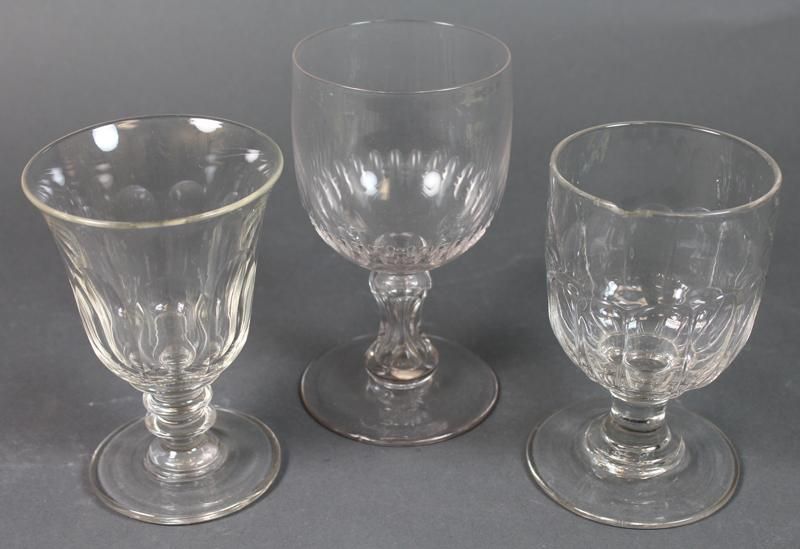 c) three piece English goblet, facet cut bowl, hollow stem, circa 1820.