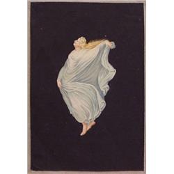 DRAPED WOMAN ON BLACK BACKGROUND, watercolor on paper, 10 x 6 3/4", mounted to gray paper, soft creases, minor scuffs. STARTING BID $20. ESTIMATE $20 TO $1000