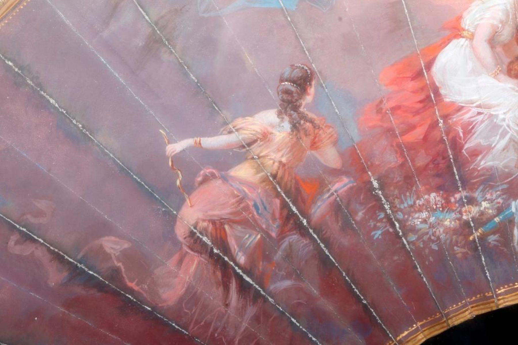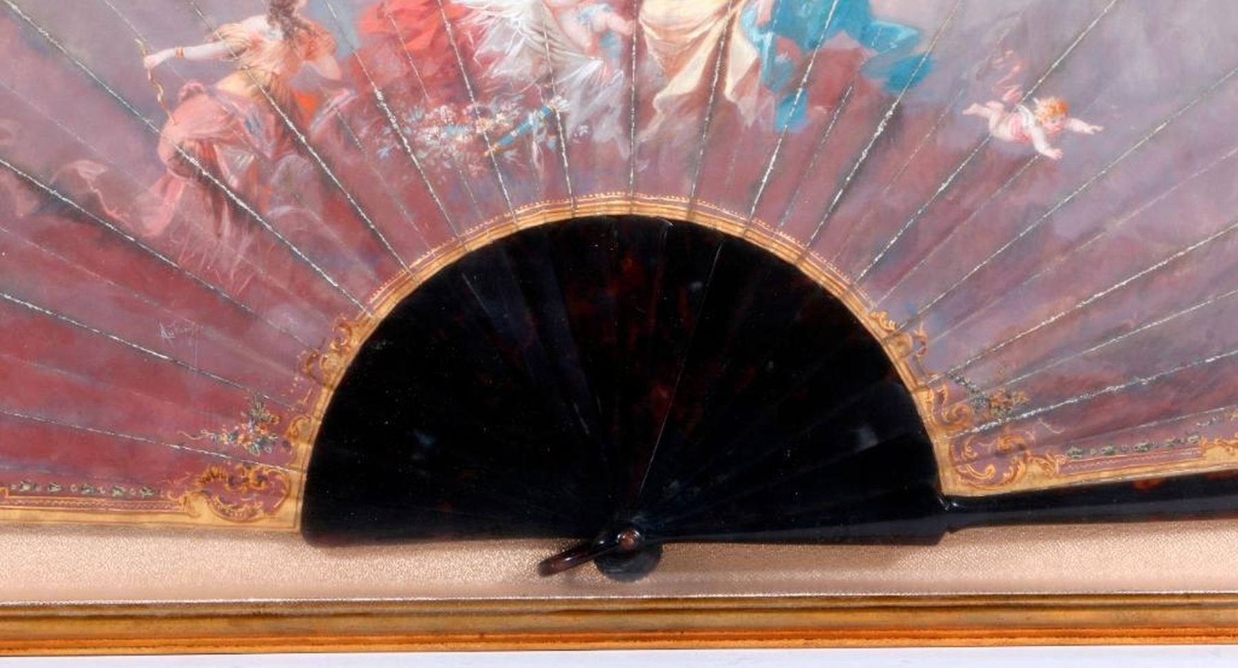A fine 18th / 19th century painted fan in case. Size case: H - 16 1/2: W - 30". Condition: Good.