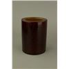 Chinese fine Peking glass brushpot; 18th century; of cylindrical form; the glass of red brown tone; covered with crackled glass on surface; H: 14.1 cm, D: 11.3 cm, 1991 grams