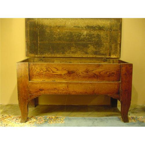 18th C. Coast of Northern France, Provincial Oak Coffer with hand wrought hardware and planed boards.