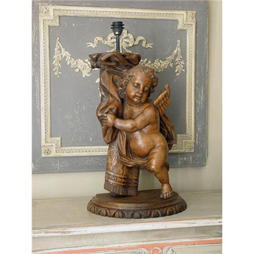 18th C. FRENCH Putto / Angel Lamp- Carved