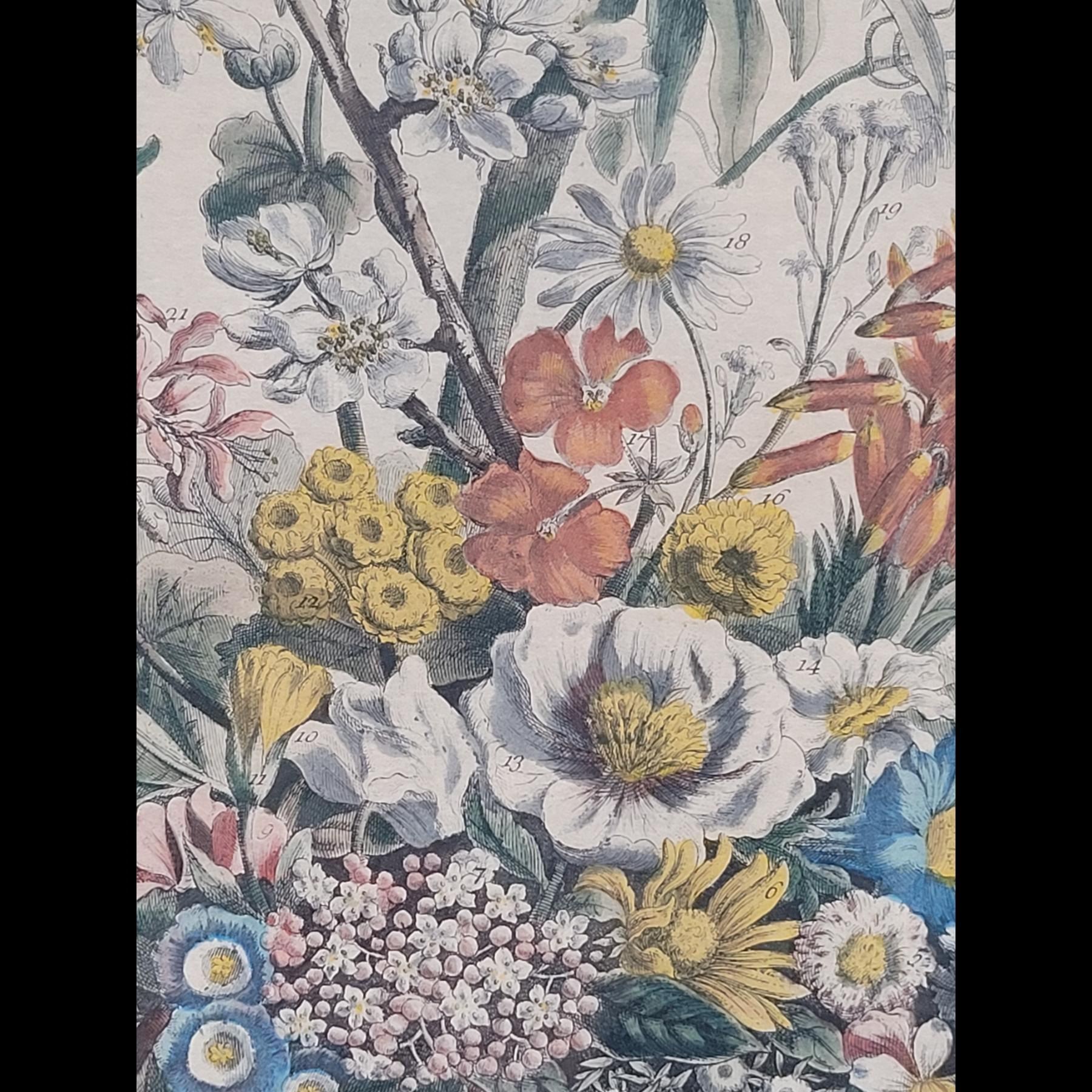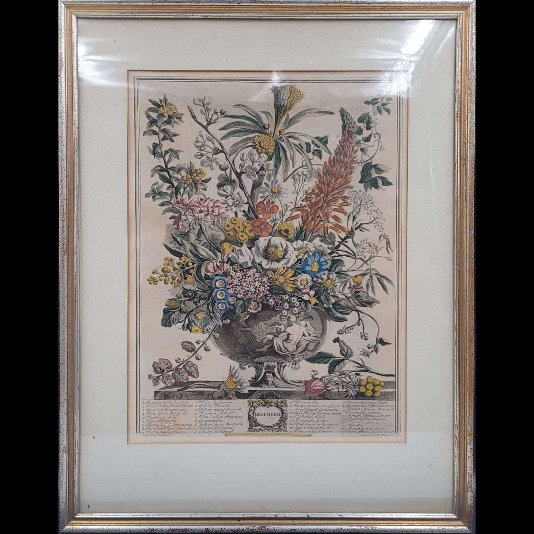18th C Henry Fletcher Color Engraving "12 Months Of Flowers" December. Measures approx. 23.5" X 18.5"