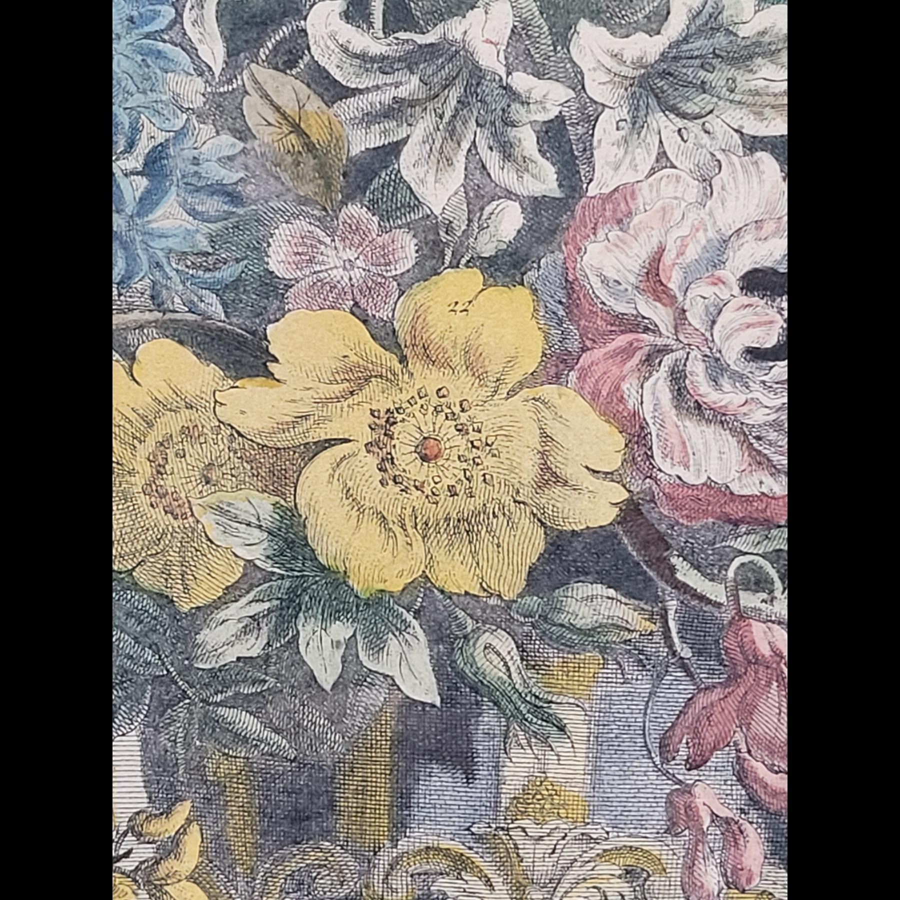 18th C Henry Fletcher Color Engraving "12 Months Of Flowers" May. Measures approx. 23.25" X 18"