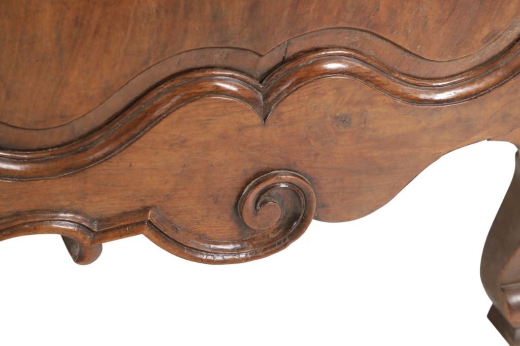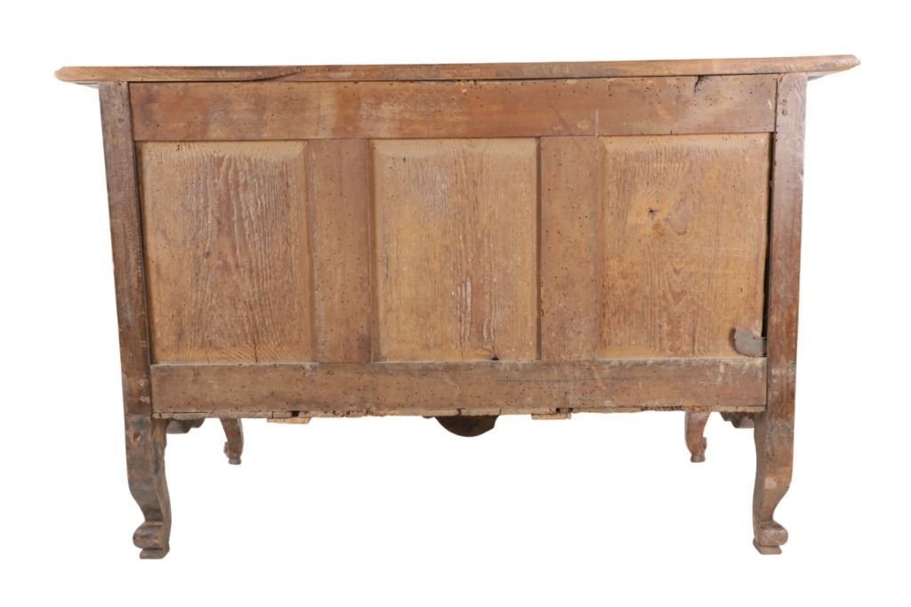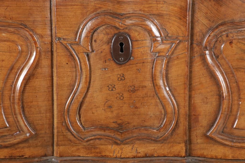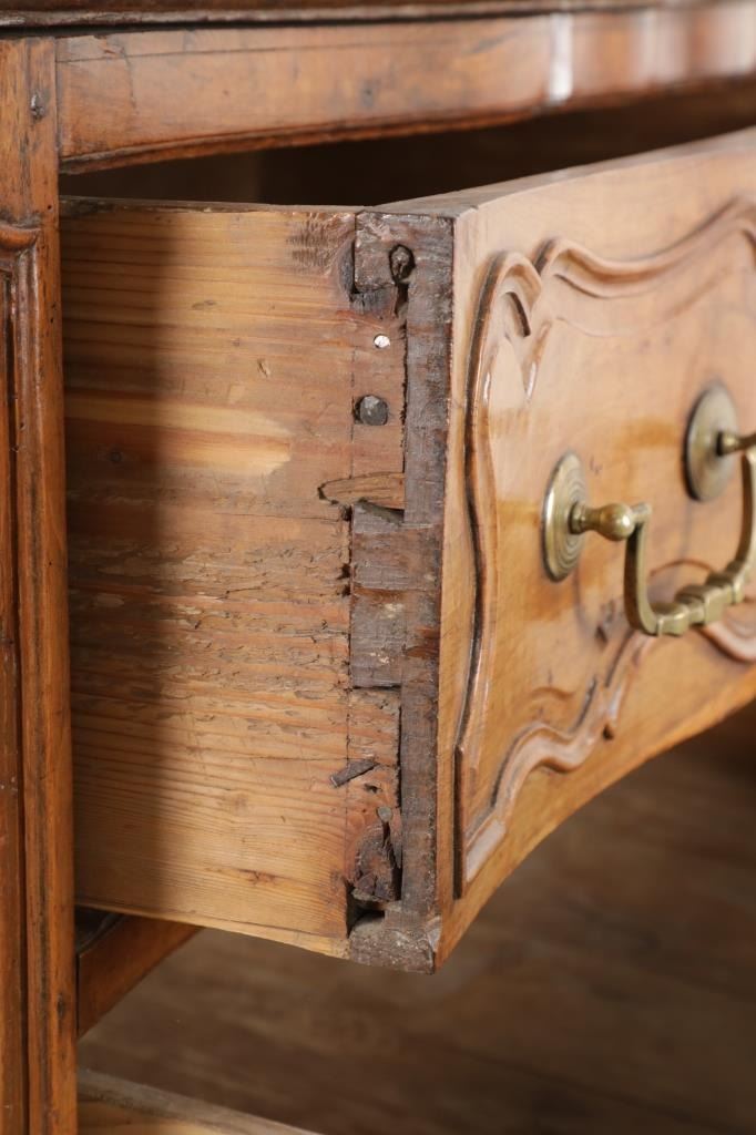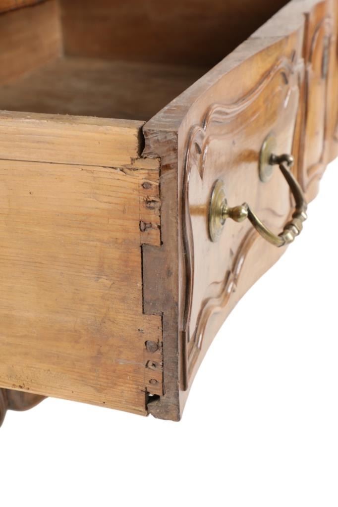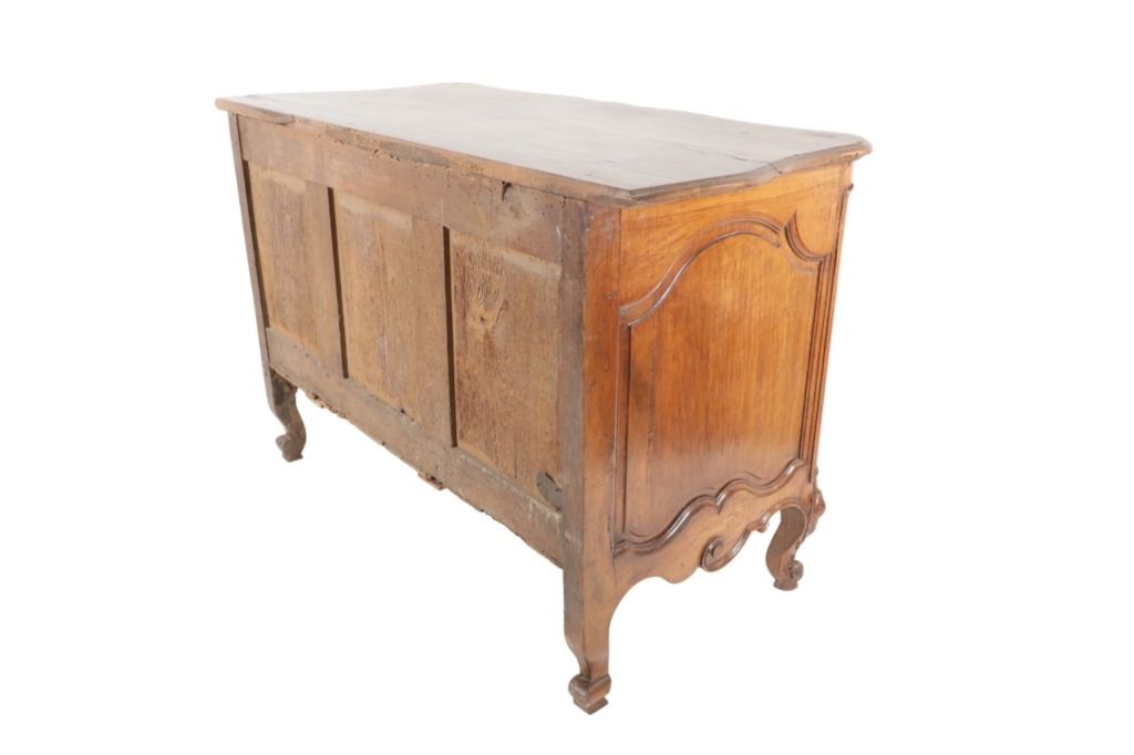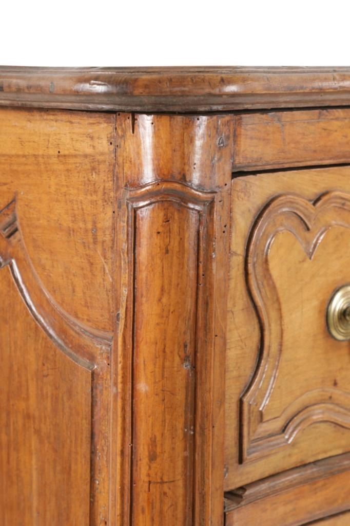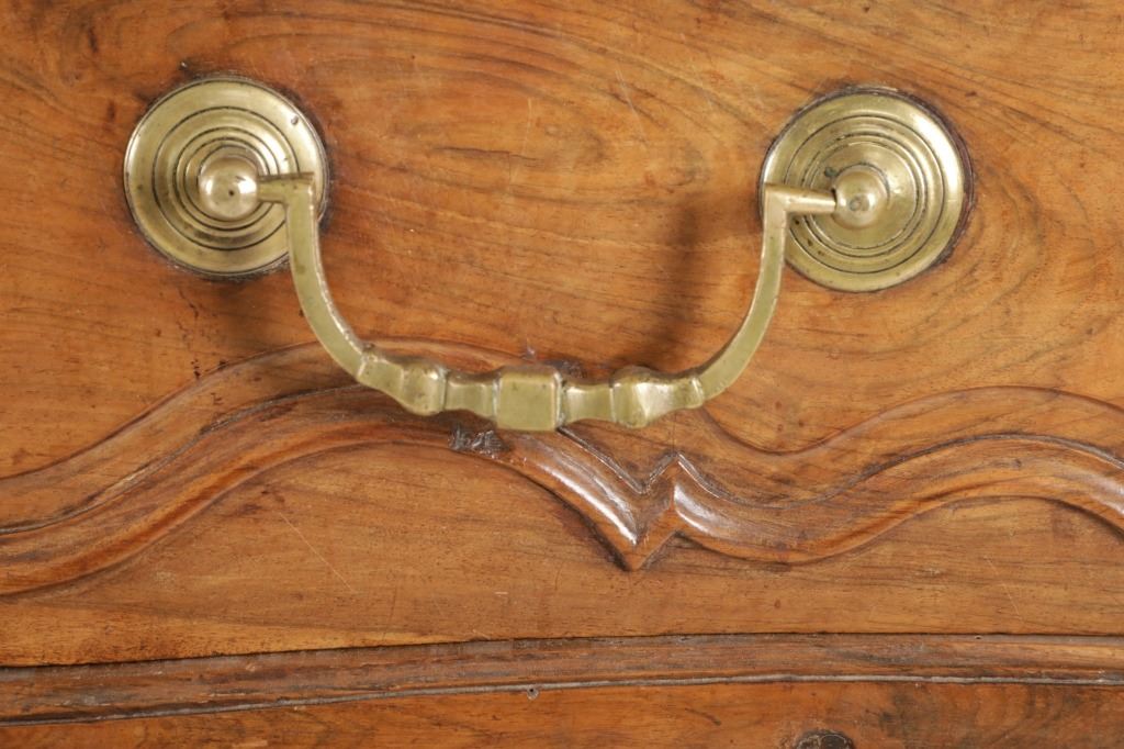 For your consideration is a Rare Late 18th Century Louis XV French Provençal Walnut Bombe Commode. Louis XV style is the epitome of French furniture at its finest. The eighteenth century is considered the Golden age of French furniture. It was during this time that the most refined and beautiful Royal furniture was made in the busy Paris workshops of Europe's elite cabinet makers. Rococo motifs are central to Louis XV furniture design. These include C-scrolls, S-scrolls, acanthus leaves, rocaille (shell-like) patterns, and pastoral scenes. These elements were used to create a sense of movement and natural beauty, often giving the furniture a light, almost whimsical appearance. The commode, a low chest of drawers, was a key furniture piece during this period. Louis XV commodes typically had bombe (curved) fronts and sides. Typical of the Provence, Arles region, this commode stands on cabriole legs decorated with acanthus leaves at the shoulder, and ending with escargot feet. Two-board serpentine top and front, two drawers having fine hand carving over an elaborate carved and shaped acanthus leaves skirt apron, hand-cast detailed brass drawer pulls and matching escutcheons hardware and original locking mechanism (key not included). Hand carved arched side panels over scalloped aprons. Excellent quality with superb craftsmanship, the commode is in wonderfully preserved condition, nice finish to two-board top, nicely finished throughout, insect damage to backboards. Measures 26"D x 54.5"W x 36"H and weighs 158 pounds.*