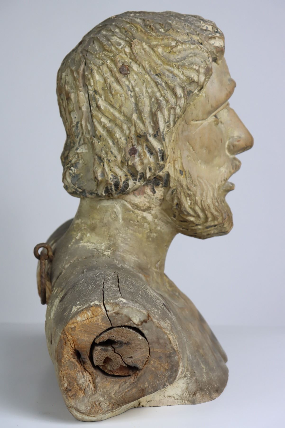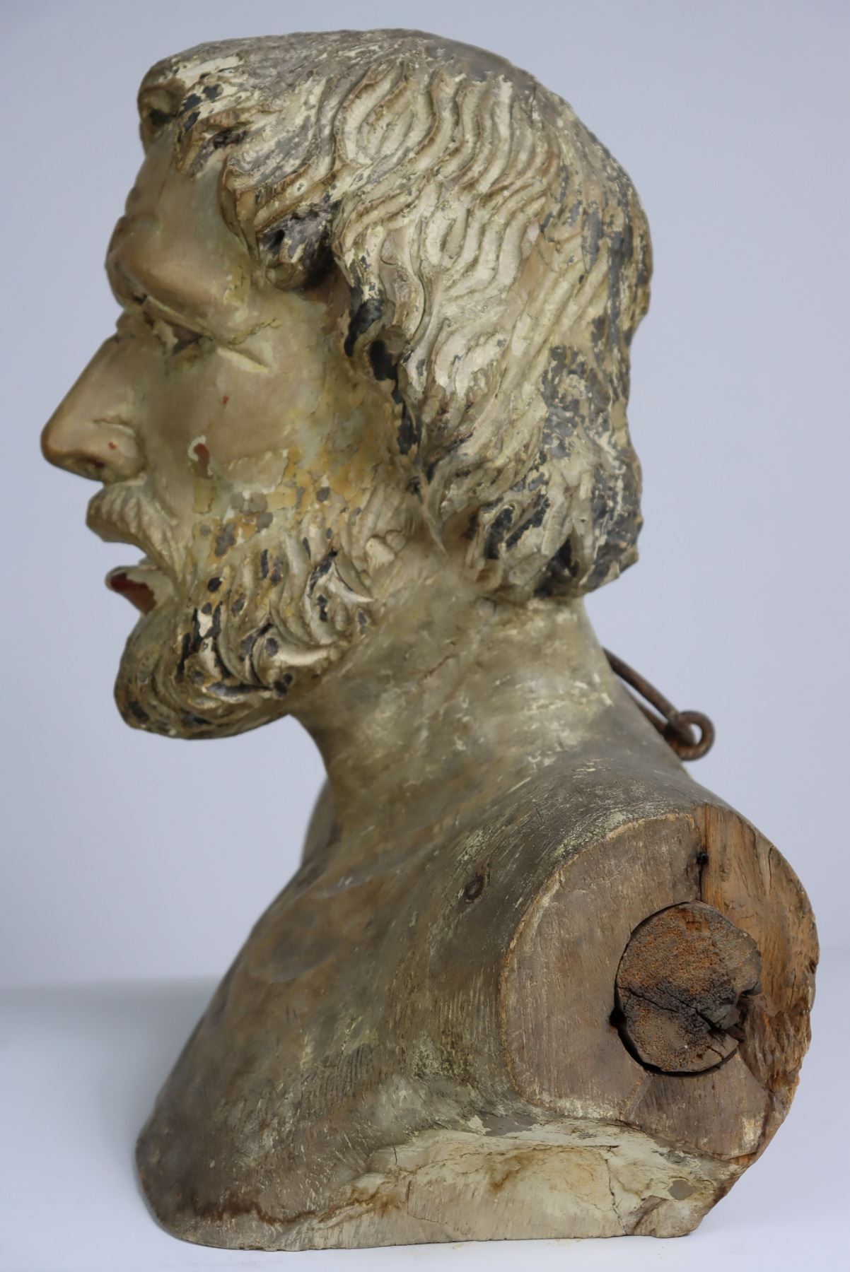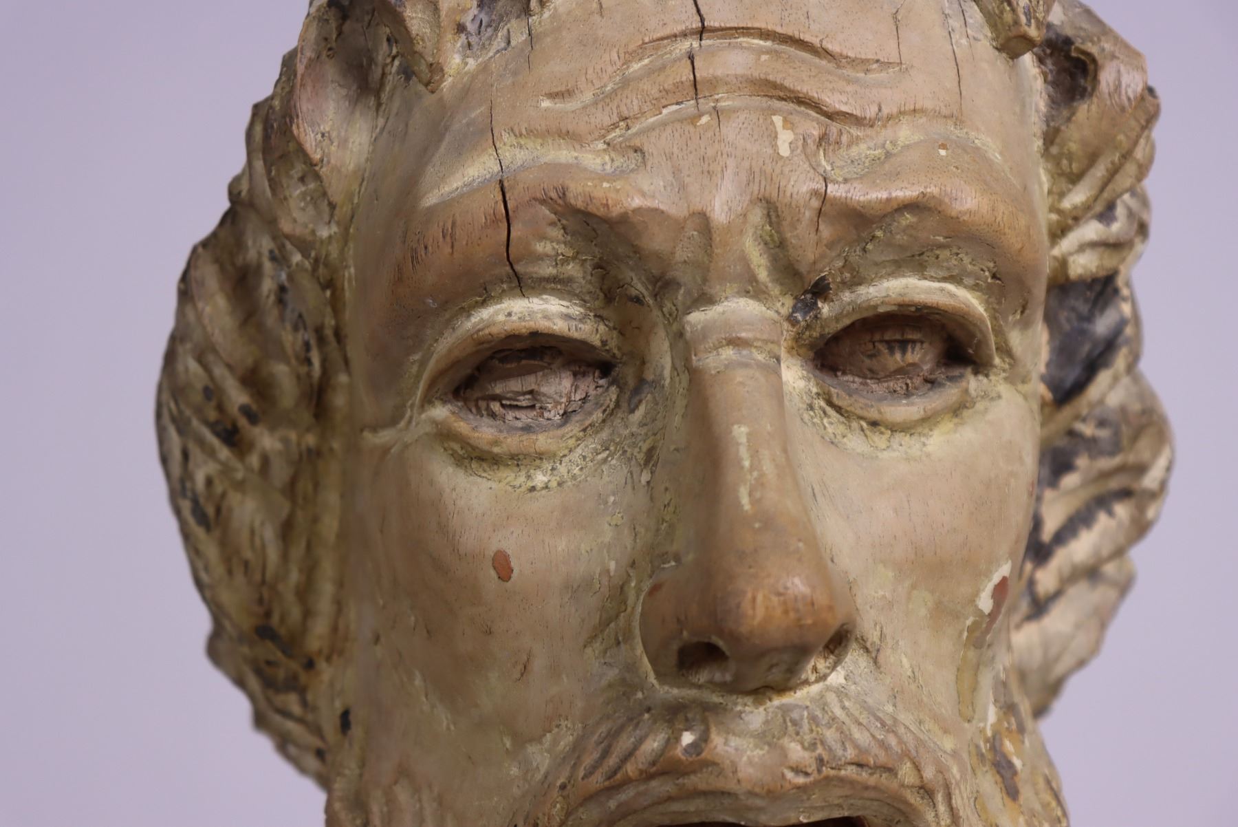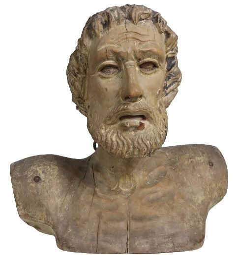 18th Century carved bust, most likely of a religious figure. Italian school, commensurate with age.