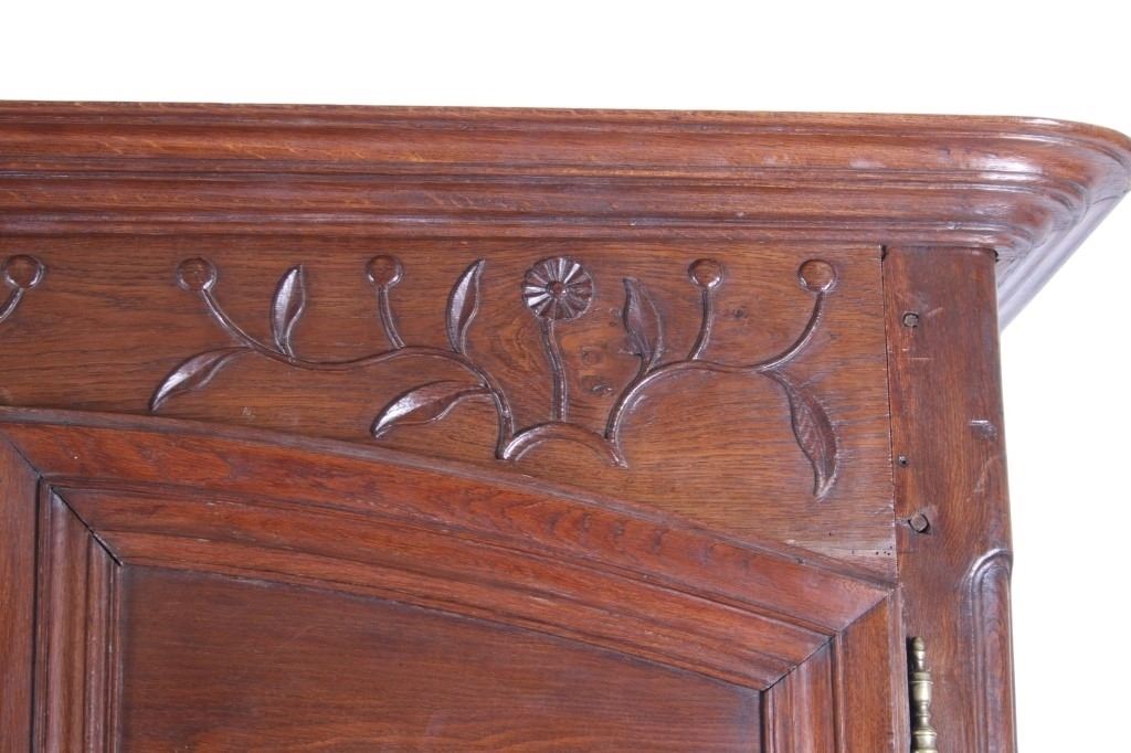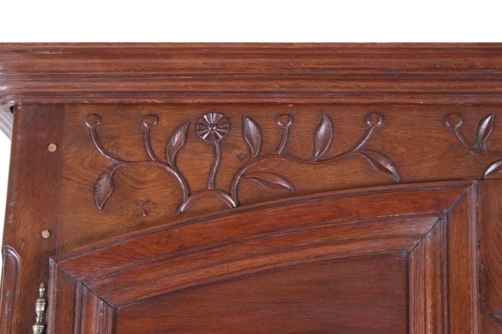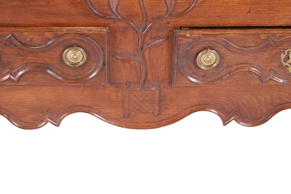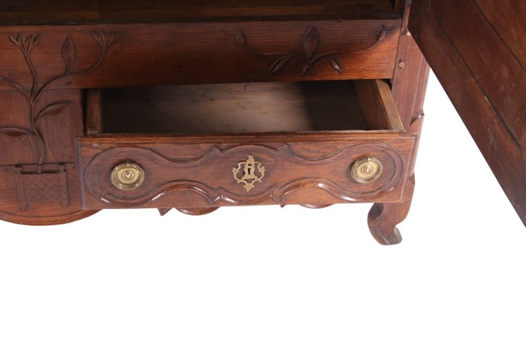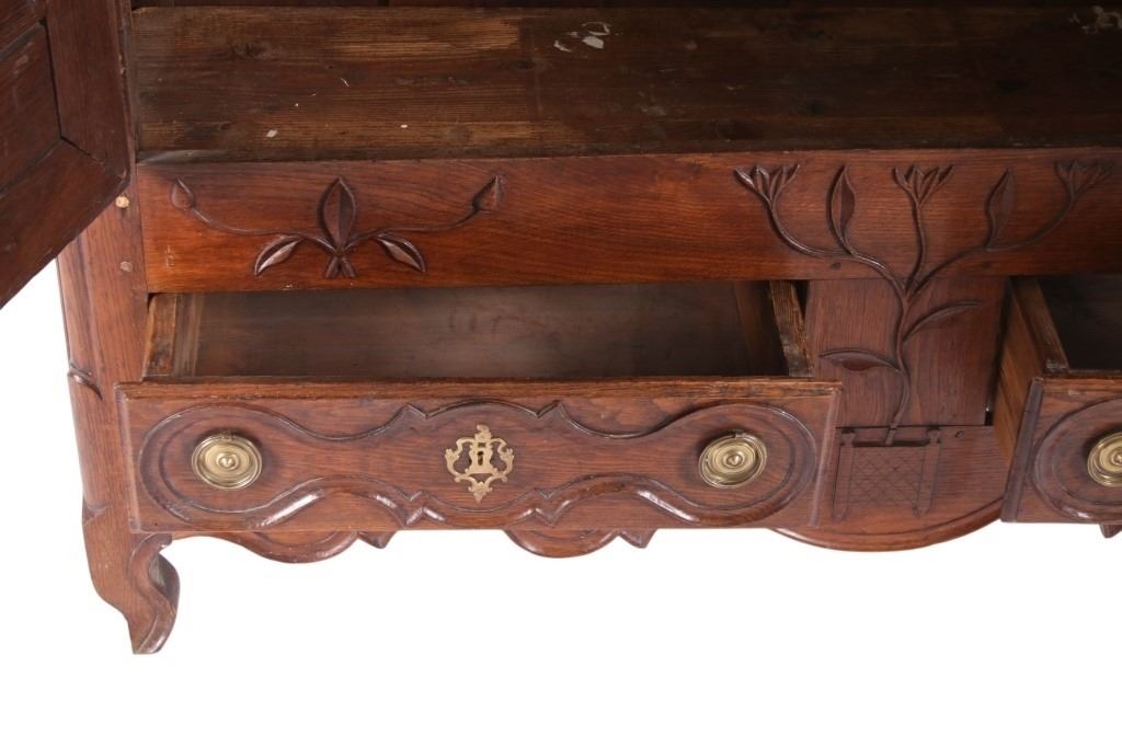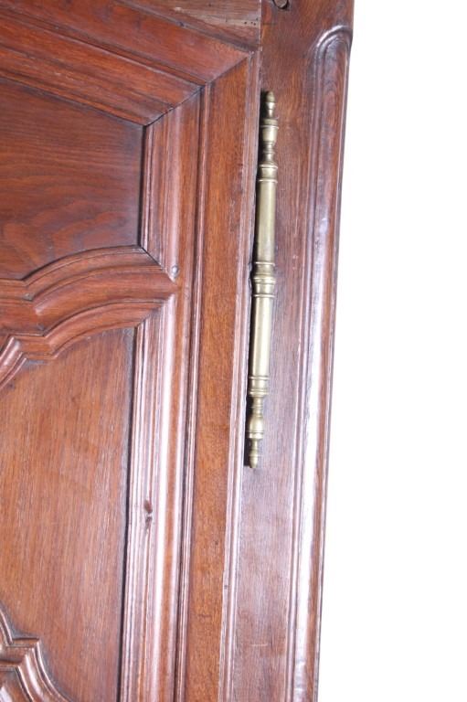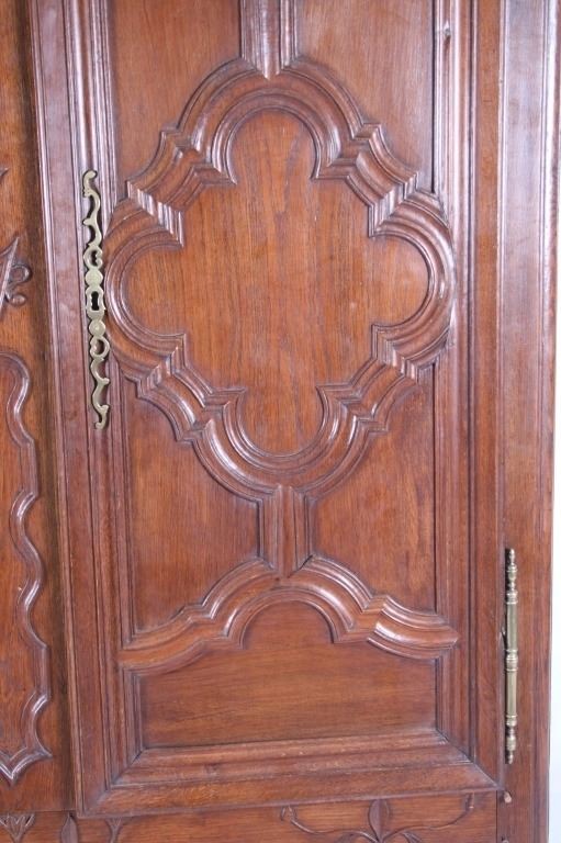 For your consideration is a Rare Late 18th / Early 19th Century French Provincial Louis XV Carved Walnut Armoire. A fine example of 18th-century French craftsmanship and sophistication, ideal for collectors and interior enthusiasts seeking timeless elegance. Louis XV style is the epitome of French furniture at its finest. The eighteenth century is considered the Golden age of French furniture. It was during this time that the most refined and beautiful Royal furniture was made in the busy Paris workshops of Europe's elite cabinet makers. Rococo motifs are central to Louis XV furniture design. These include C-scrolls, S-scrolls, acanthus leaves, rocaille (shell-like) patterns, and pastoral scenes. These elements were used to create a sense of movement and natural beauty, often giving the furniture a light, almost whimsical appearance. The armoire features two wonderfully carved large swingout locking doors open to a spacious storage area with two shelves, oversized brass hinges and large decorative openwork brass escutcheons. The face of the armoire has vine-inspired floral carvings vertically and horizontally. The two lower drawers are nicely carved, brass pulls and escutcheons. Serpentine carved apron flows into cabriole legs. Recessed side panels feature serpentine carved aprons. Excellent quality with superb craftsmanship, the armoire is in wonderfully preserved condition. Measures 68"W x 95"H x 24"D, weight is 341 lb.