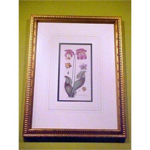 This listing is for one of two compatible 18th century botanical engravings, on laid paper, in new gilt wood frames and french mats. Very delicate renderings of floral motifs, in soft and pleasing colors. As framed, they measure approximately 16" by 20.5".