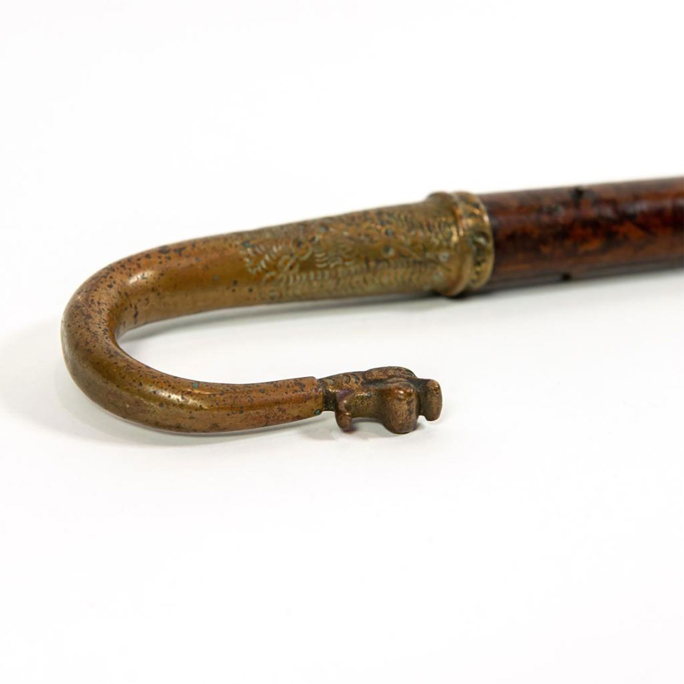 Hand carved Asian cane/walking stick. 34.5"L full-bark Malacca wood shaft. Ferrule is 2" brass. This rare cane has a handle which is hand carved depicting the legend beast (Naga or dragon). Excellent condition with age related wear. Fashion Canes and Walking Sticks