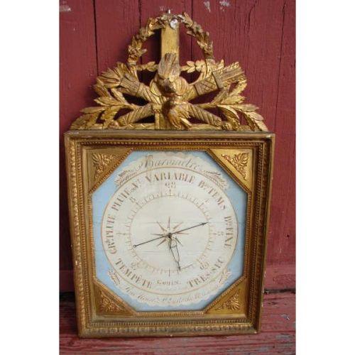 Important French Barometer with gilt crest and frame. Measures 34" tall by 20 " wide.