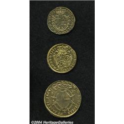 <B>18th Century Gold Trio, </B></I>10 Scudi 1756 KM255, polished VF, 10 Scudi 1762 KM271, VF-XF lightly cleaned and 20 Scudi 1774 KM294, polished VF. Three scarce types from this elusive location, and nicer coins than the description might indicate. <B>Sold as is, no returns for any reason.</B></I> <BR><I>From the Morris Geiger Collection.</B></I> 3 coins <BR><BR><B>Important notice:</B> Heritage usually auctions material at the rate of 200-250 lots per hour. On some occasions eBay Live bid software or the Internet may not be able to keep up with the pace of the auction. We recommend placing a realistic absentee bid now as insurance to avoid disappointment. Occasionally the auctioneer may eliminate or reject an eBay Live bid, and the auctioneer may also reopen a lot after the close of the eBay live bidding (usually because we missed an audience bid), and may reject your bid even if it shows you as the winning bidder. By bidding via eBay Live, you agree that Heritage may award the lot to another bidder at its sole discretion under the circumstances described above or any other reasonable circumstances. Since eBay bids are not shown to us until we open the lot on the floor, we treat those bids just like floor bids. In most cases the floor responds before the eBay bid is presented to us, due to Internet lag time, so for consistency we have made it a policy that floor bids are always considered first over tie eBay live bids. Also please note that all Heritage lots purchased through eBay Live carry a 20% Buyer's Premium. Please make sure you read the Terms and Conditions before you bid.