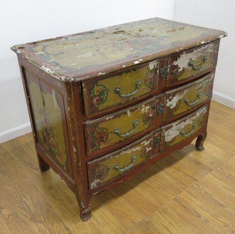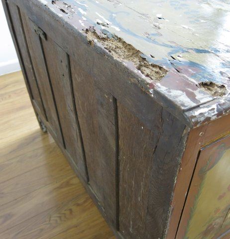 3 drawers. Damages. Pitted top. Needs paint restoration.