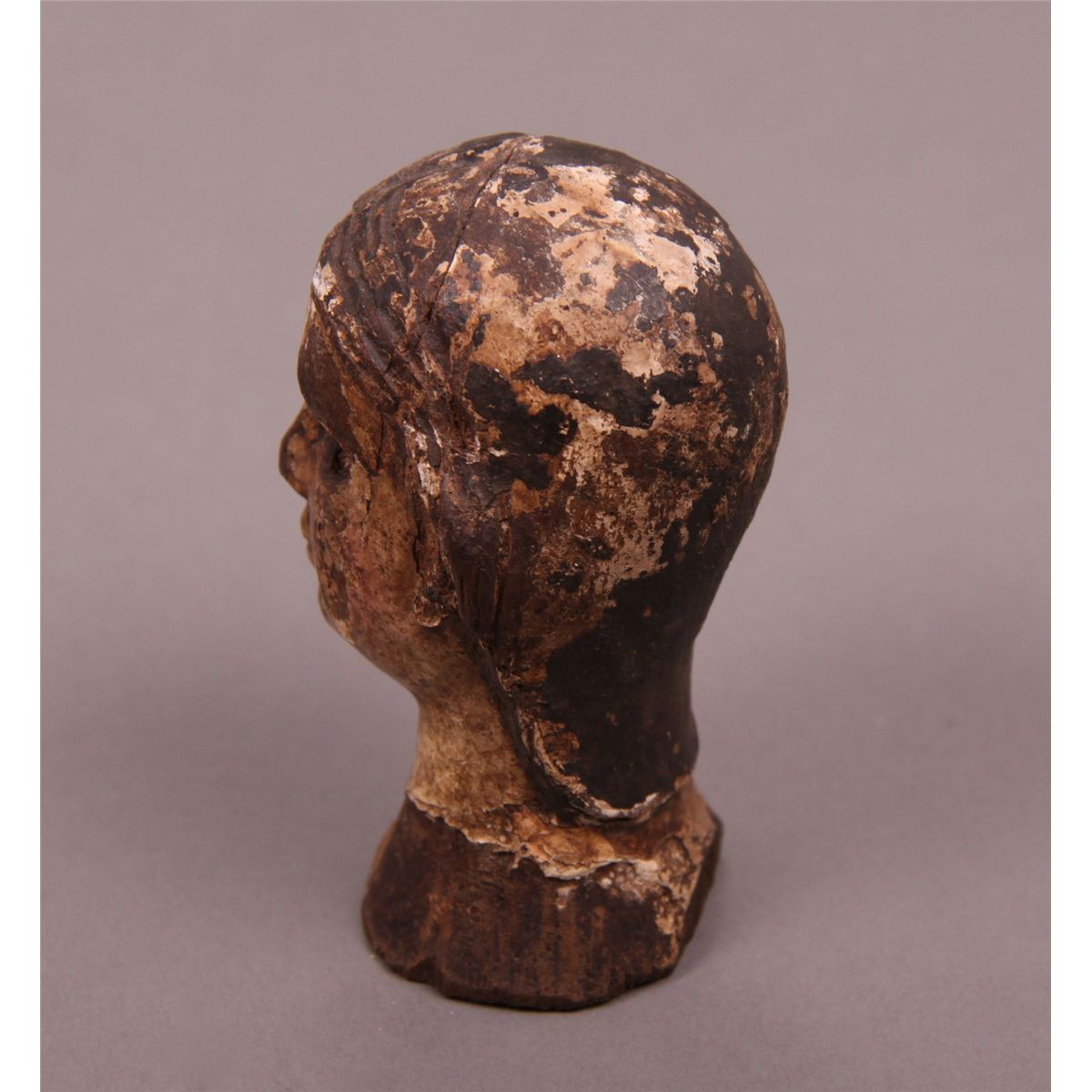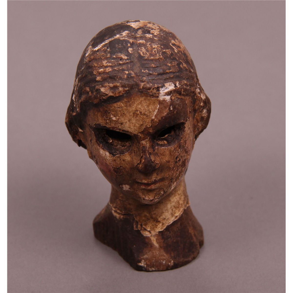 18th Century Santos Figure Head 1.2 (oz),3 (in),1.75 (in),2 (in)]. This is a head fragment of an early Santos figure.