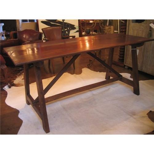 This gorgeous farm table table is from 18th century Spain and made of solid walnut. It has a solid build which would make it ideal for a dinner table or console, could also be used as desk.
