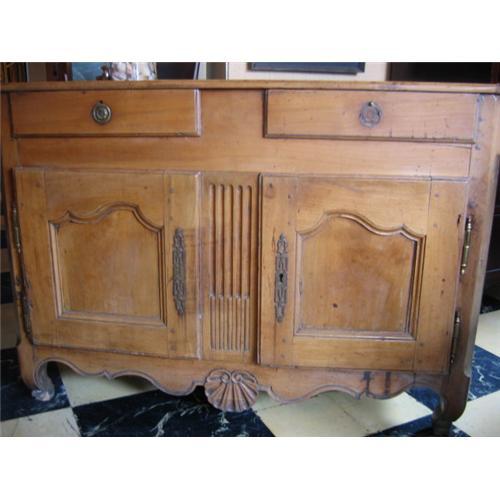 This provincial side cabinet, is beautifully proportioned. The two drawers are false, as top lifts. The doors are paneled and the skirt is shaped. Some old repairs, and some restoration necessary for the perfectionist