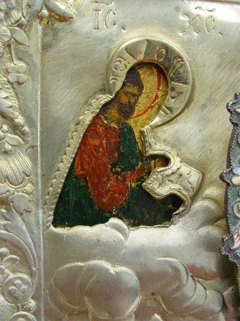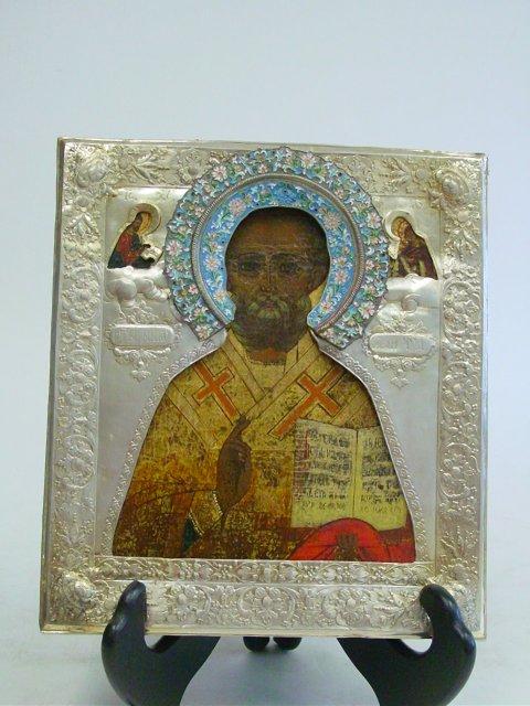 With 20th c silver & enamel riza. Approx. 12.25" x 11". Please read our terms of sale.