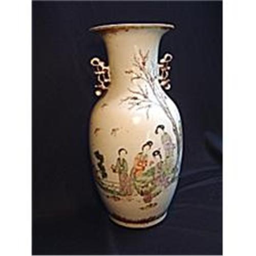 Qing dynasty, 18th. century Chinese vase with figural design. Baluster type with gilded handles. Perfect condition. Size: 17 X 6.8 inches (43 X 17.2 cm.).