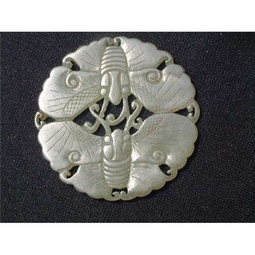 Exquisite 18th. century celadon jade carving in shape of 2 facing adult cicada. Highest quality of nephrite jade, free of inclusions, dating to Qien Lung period. Diameter: 2.3" (6 cm.). Estimated value : $1800. Provenance: Dr. Veleanu's jade collection, the author of collectors' illustrated textbook: "Jade, 5000 BC to 1912 AD, Guide to collectors".
