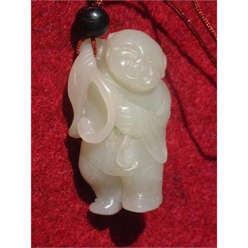 18th. century celadon jade carving in shape of Shou Lao. This is a high quality of jade carving of Qien Lung period, done in homogenous, flawless, celadon jade. The carving was done in open work and in high relief. Length: 1.6" (4 cm.). Provenance: Dr. Veleanu's jade collection, the author of the collectors' textbook: "Jade, 5000 BC to 1912 AD, Guide to collectors". Estimated retail value: $1000.