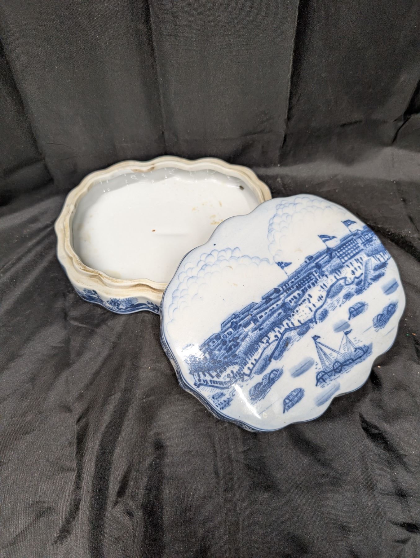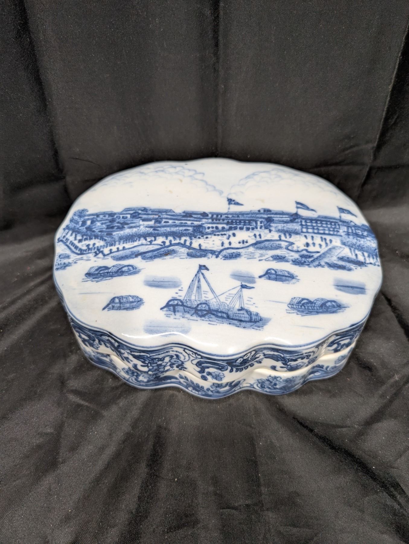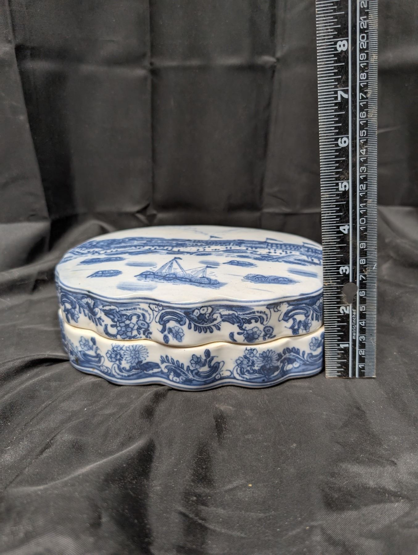 18th or 19th Century Vintage Chinese Blue and White Porcelain Trinket Box