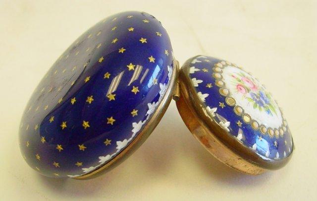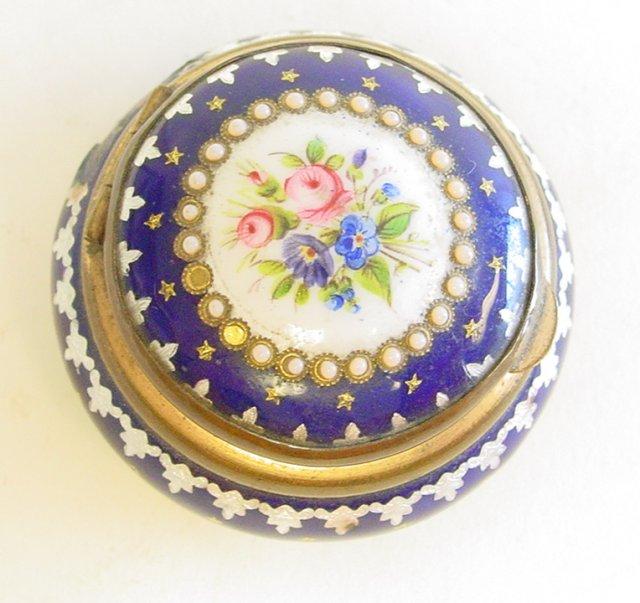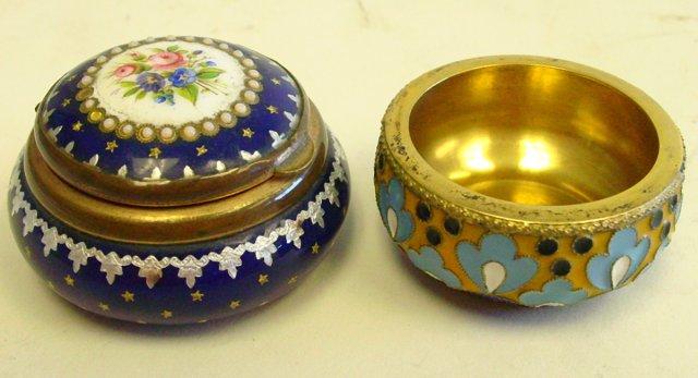 Pill box is French, some enamel loss on pill box. Cellar marked 916 (Russian) & makers mark star.