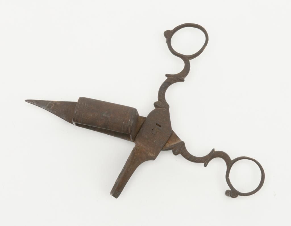 18th to early 19th century candle snuffer. Pitted and rusted. Collected on the east coast. Est.: $60-$120