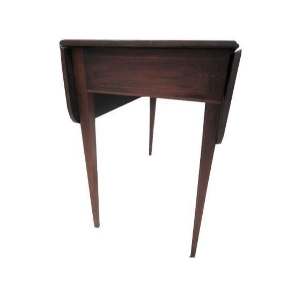 Federal inlaid mahogany Pembroke table. Baltimore late 18th century. Rectangular top with two drop-leaves upon square frieze, with lightwood stringing on inlaid square tapered legs. 28 1/4"H X 37"W (open) X 33 3/4"D.