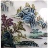 A Fine Five-color Glazed Porcelain Brush Pot In Good Condition, Painted With The Vivid Mountain Landscaping Patterns On The Finely Potted Cavetto. Multiple Delicate Designed Houses With Green Plants Growing BesidesRocks On Grassy Mountains. Blooming Red Glazed Flowers On The Other Side. A Person Driving On A Small Boat In The Middle Of The Clear River.