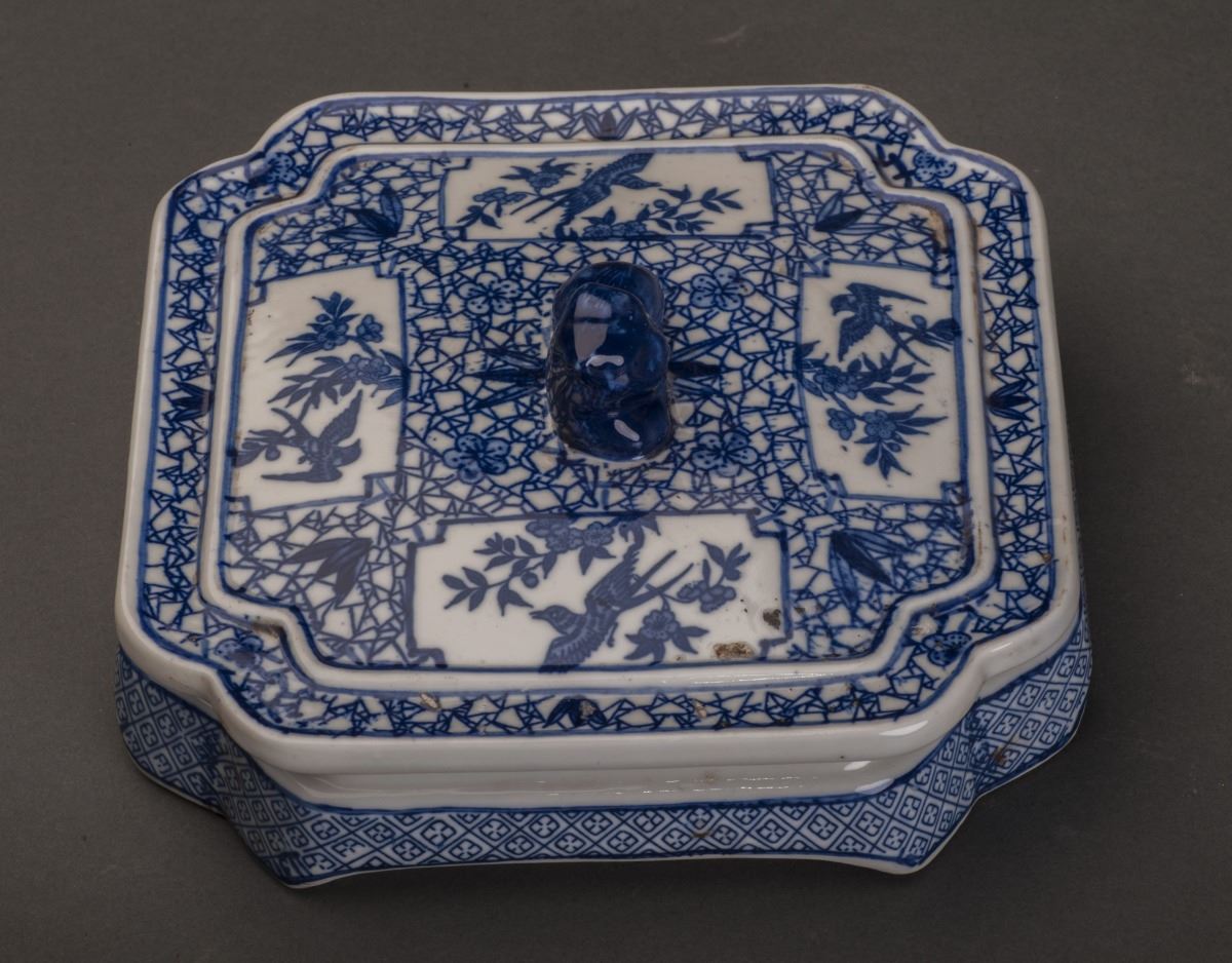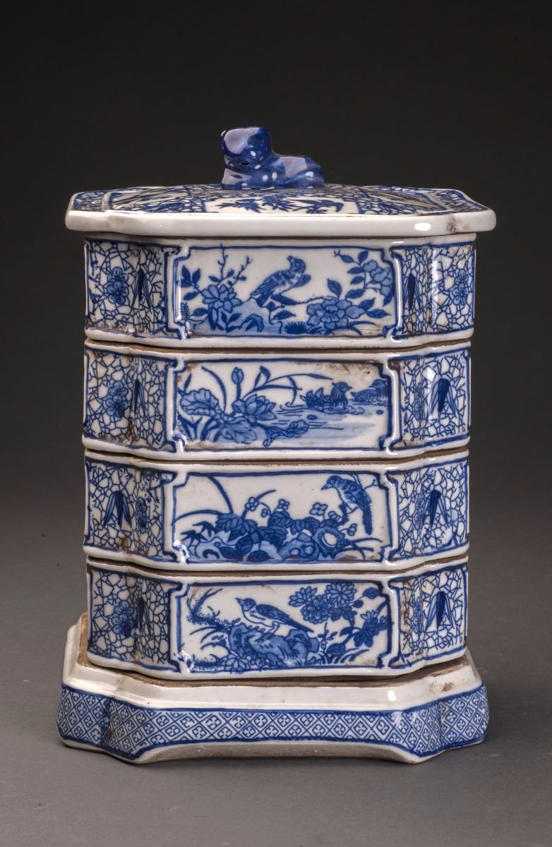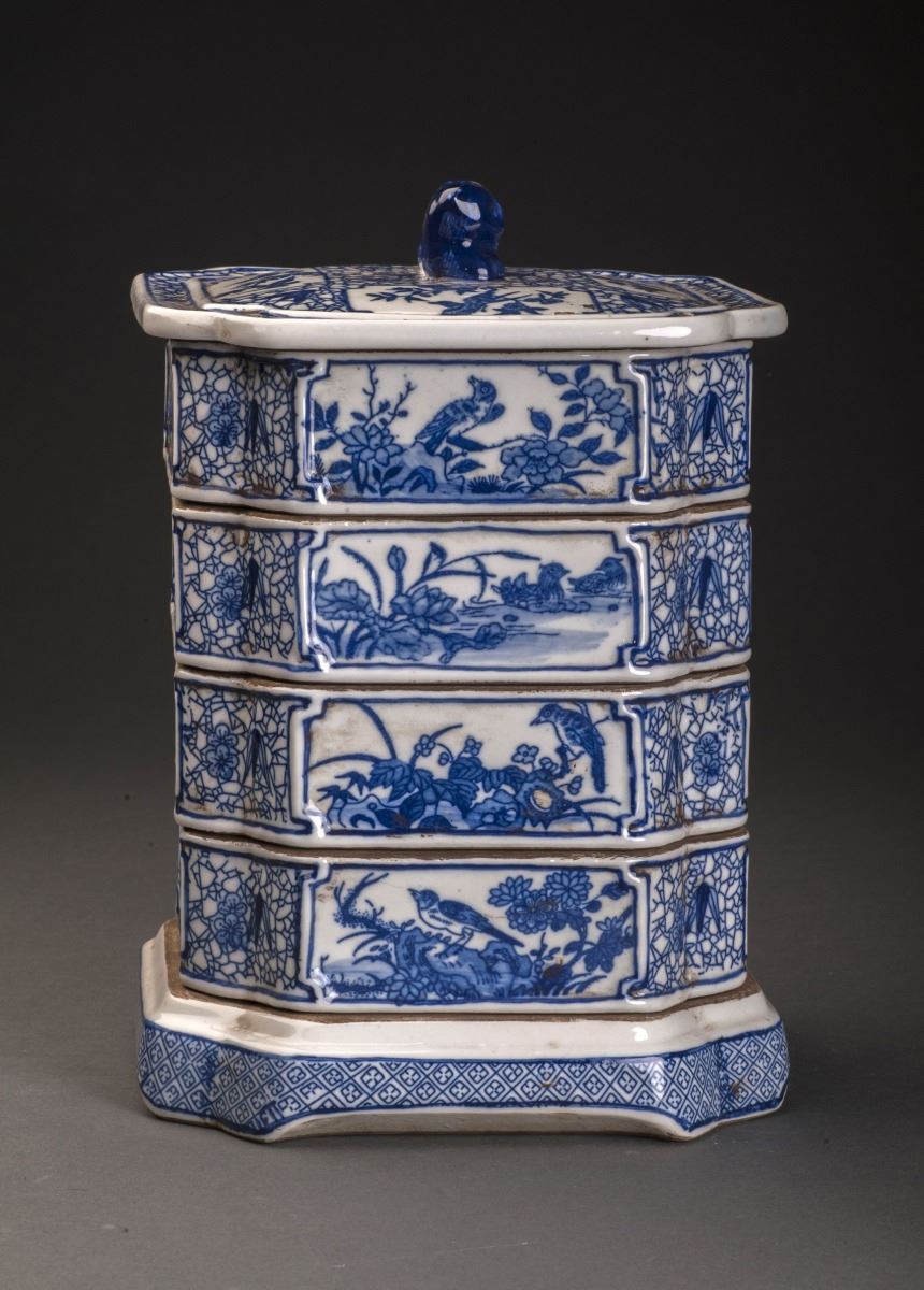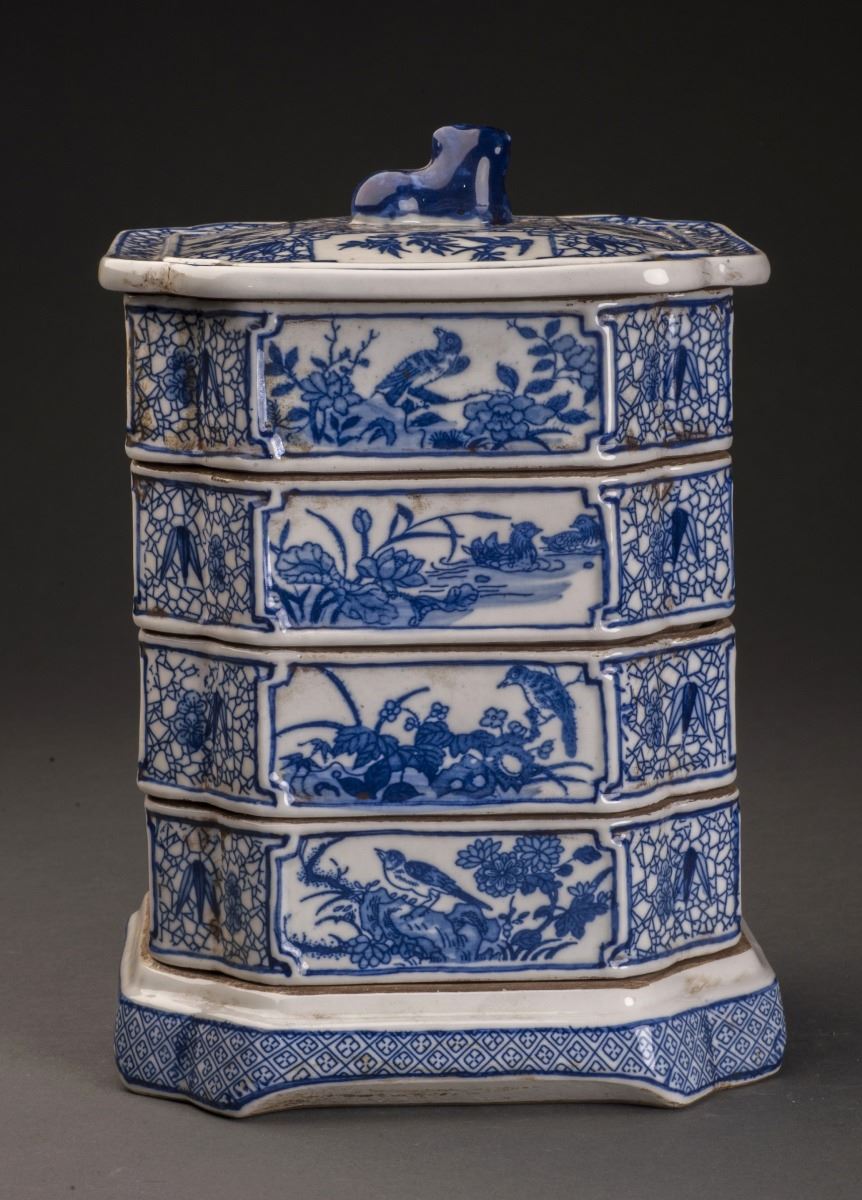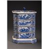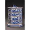 A Fine And Rare Porcelain Container In Good Condition, With Fine And Beautiful Blue And White Glaze Throughout. Four Drawers In Total. Each Side Decorated With Unglazed Grounds And With The Delicate Designed BirdsAnd Flowers Patterns. With The Repeated Design On The Cover. Marked As Qianlong(1735-1796) On The Bottom.
