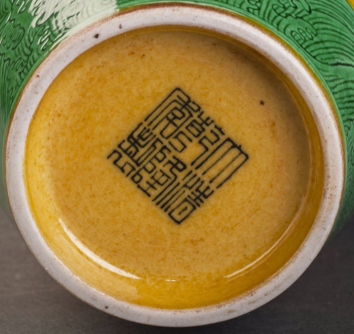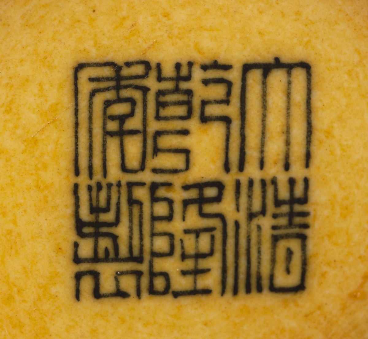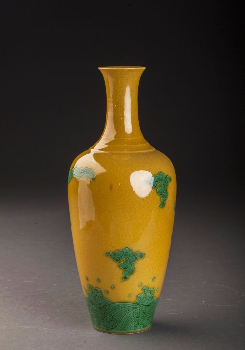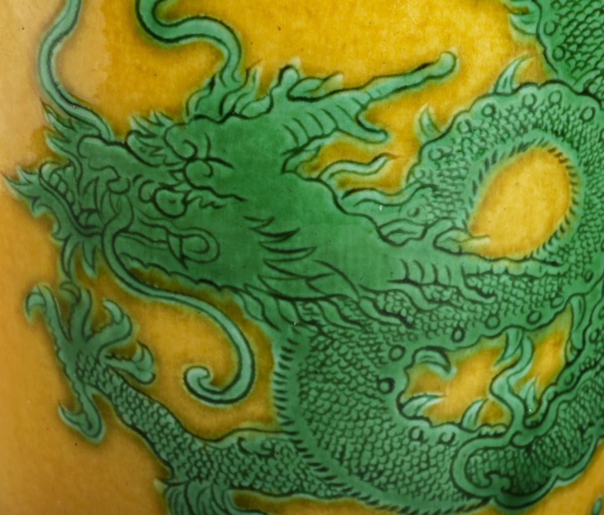 With Fine Yellow Glaze Throughout, This Porcelain Vase With Vivid Painted Dragon Patterns At The Finely Potted Cavetto. The Vivid Dragon In Extremely Detailed And The Face Vividly Expressed. The Globular BodyRaised To The Short And Thin Neck Above, With A Slightly Flaring Mouth At The Top. With The Black Glazed Six-character Marks On The Bottom And Of The Period Of "qianlong(1735-1796)".