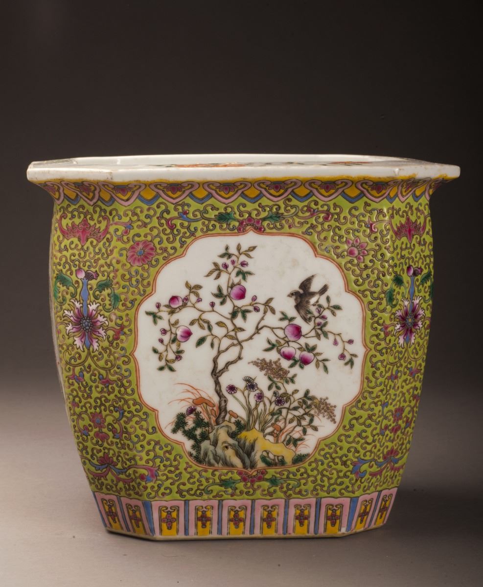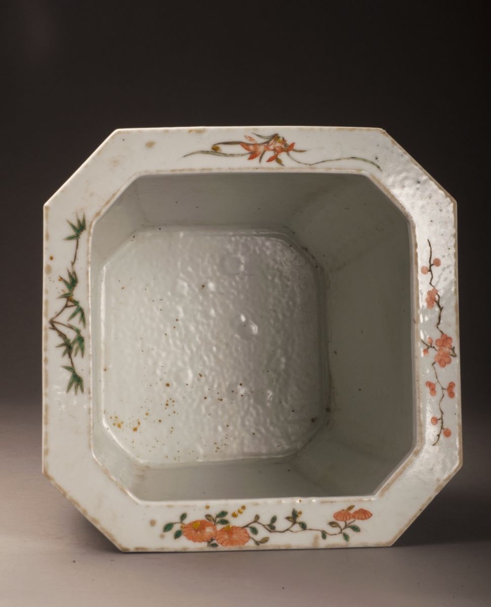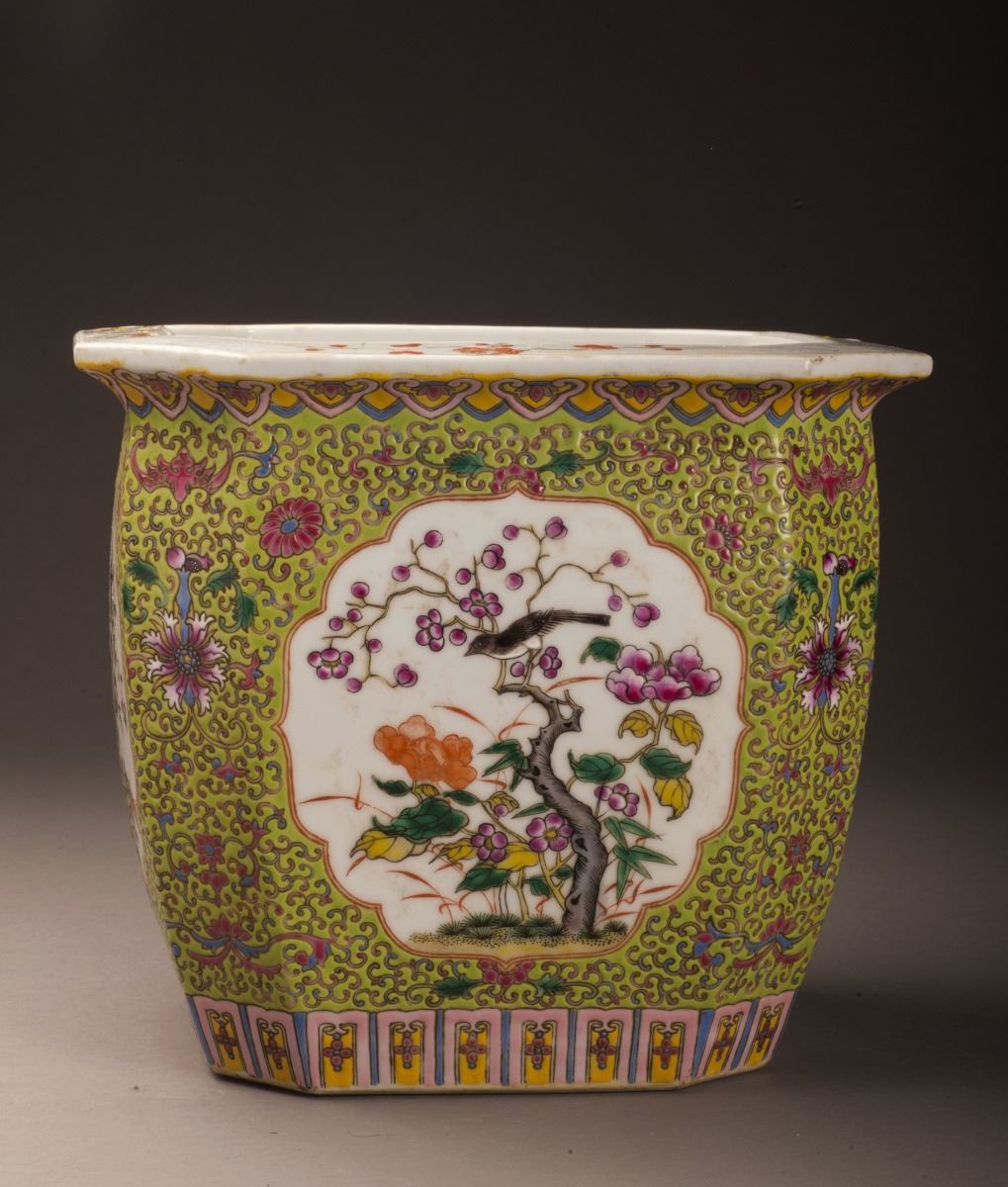 This Fine And Rare Porcelain Flower Pot With Fine Multicolor Glaze Throughout, Within The Form Of Square Shape. Heavily Potted Rim At Edge At Top. The Main Body With Four White Grounds. Each Painted With Vivid Flower AndBirds. Marked As "qianlong(1735-1796)" On The Bottom.