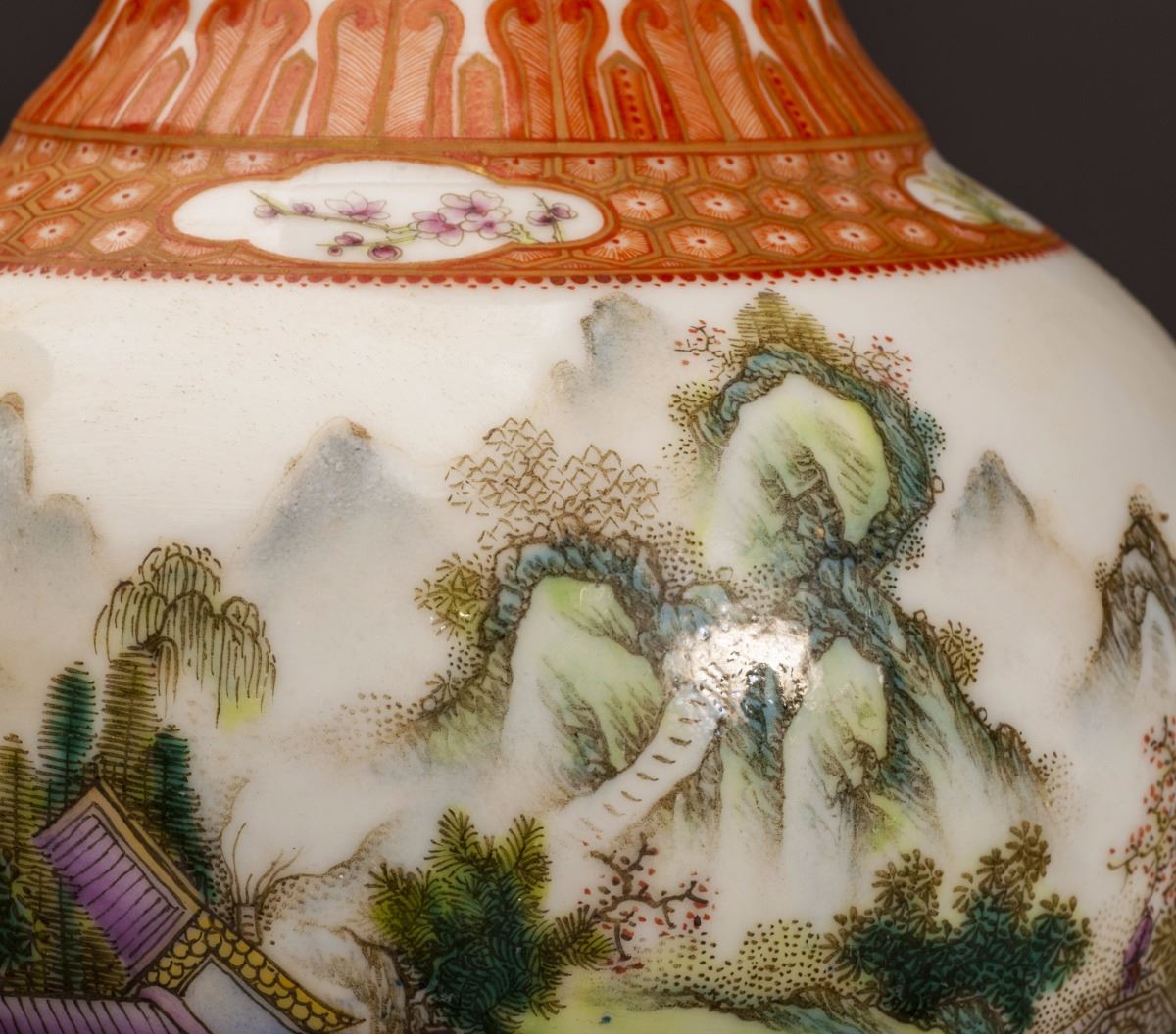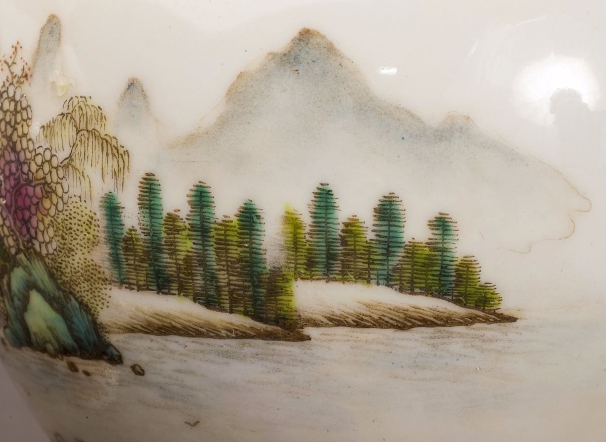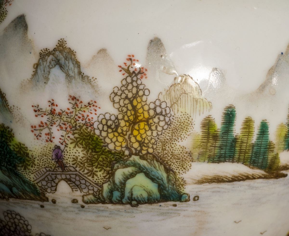 A Pair Of Fine Condition Porcelain Vases, Within Fine Multicolor Glaze Throughout. Painted With Vivid Mountain Landscaping Patterns. Depicted With Vividly Designed Features In Yards. All Set Within TheMountains And Rivers And Rocks. Gilding Moulded Rim At Mouth. Marked As "qianlong(1735-1796)" On The Bottom.