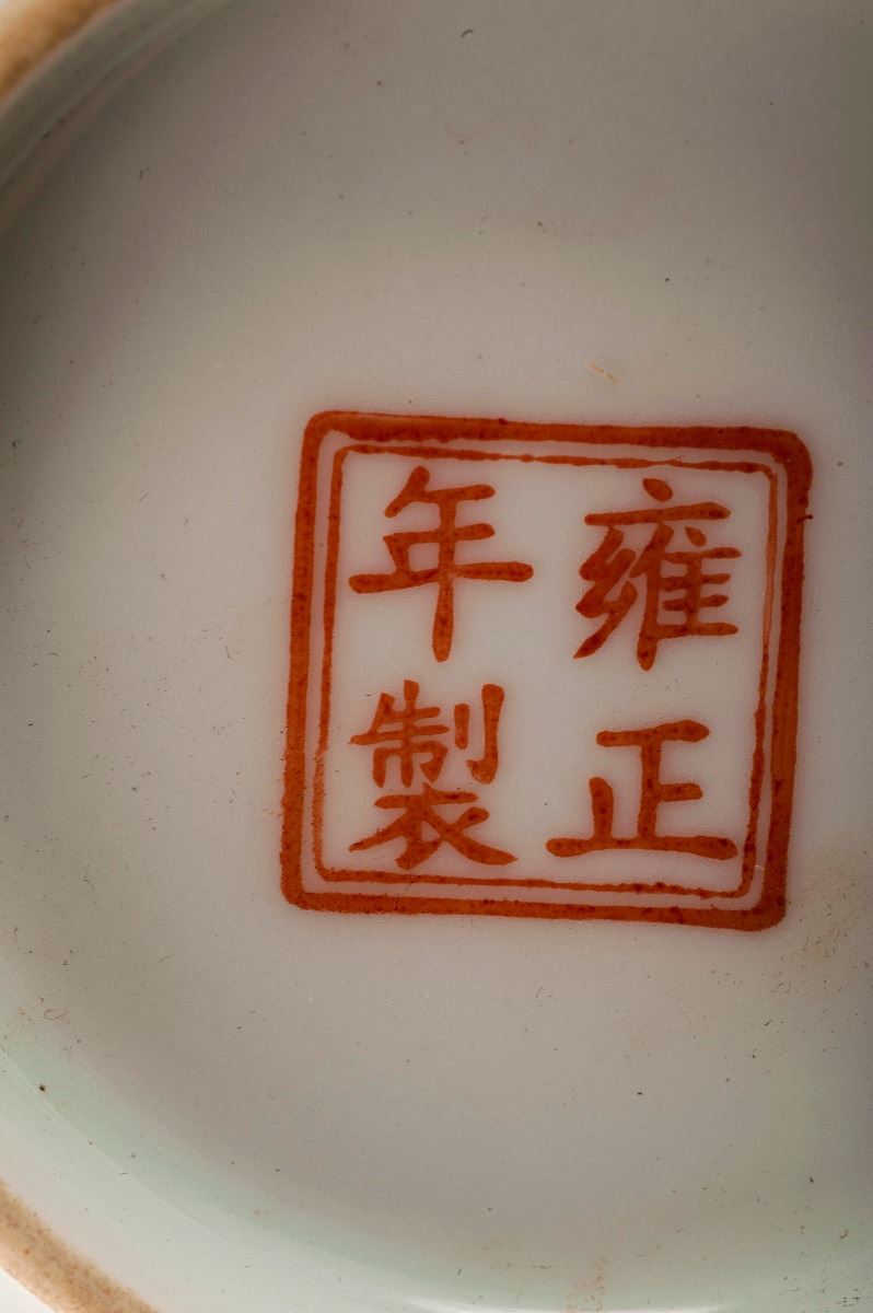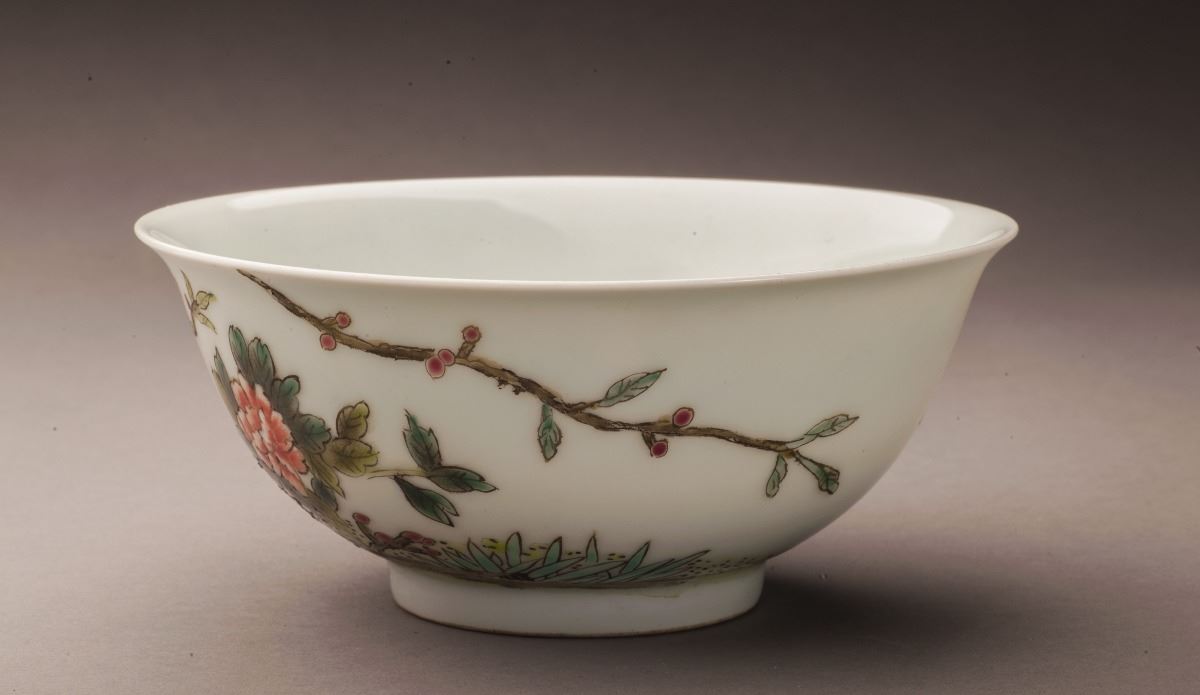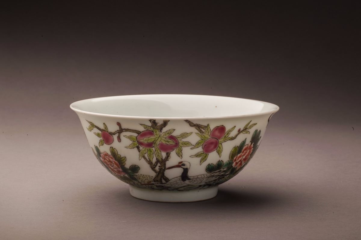 A Fine And Rare Multicolor Glazed Porcelain Bowl In Good Condition, Painted With Vivid Pink Glazed Peaches And Ducks At The Finely Potted Cavetto, With A Flaring Mouth And Raised To The Short Foot At Bottom. With Four Red Glazed Characters At Bottom And Of The Period Of "yongzheng(1722-1735)".