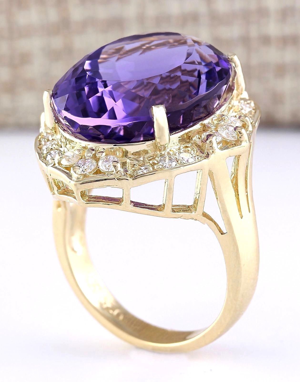 19.00 CTW Natural Amethyst And Diamond Ring In 14k Solid Yellow Gold
