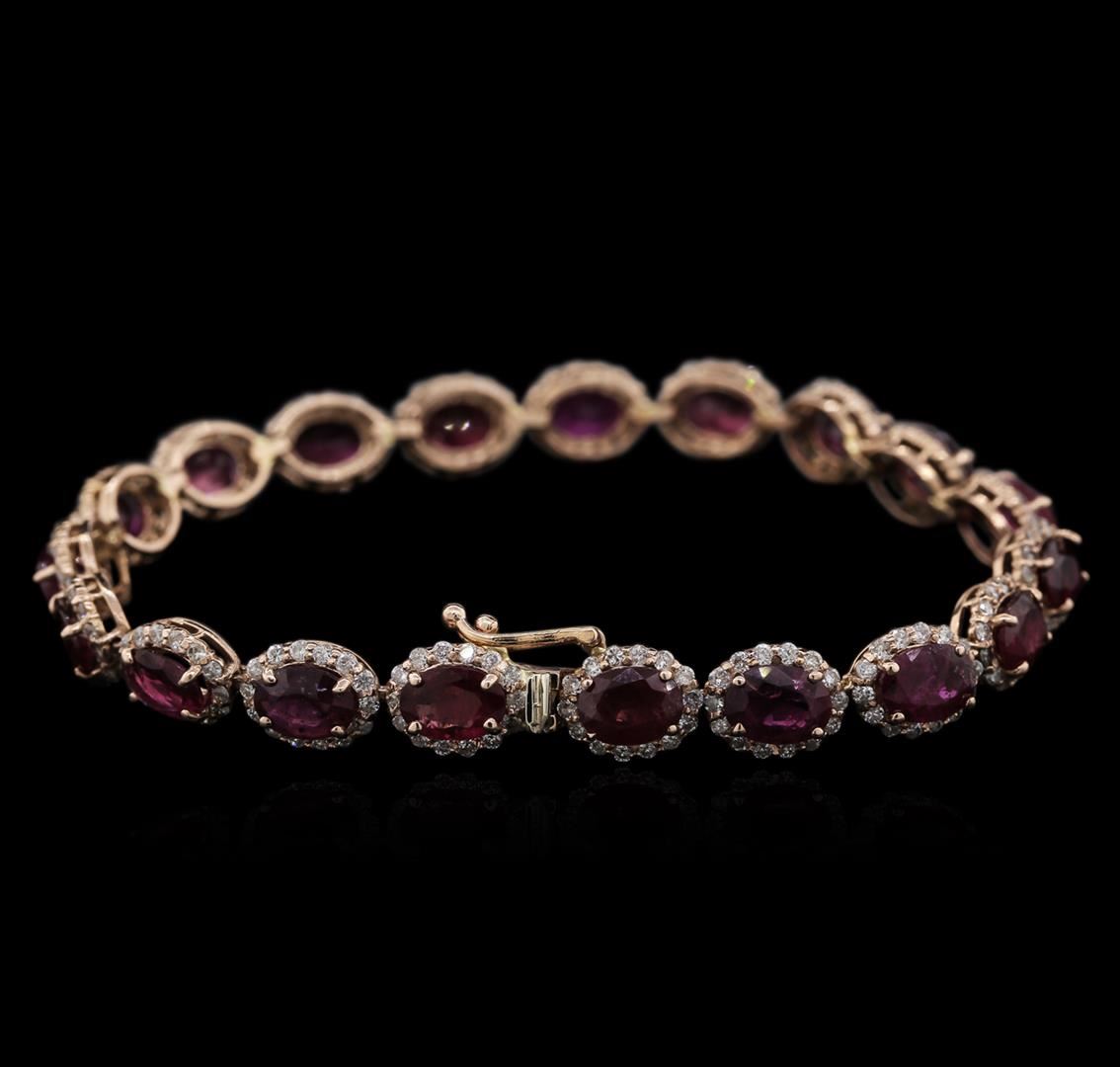 One bracelet featuring: 14KT rose gold weighing 15.00 grams containing 19 rubies with a total weight of 19.03ct and diamonds with a total weight of 3.20ct.