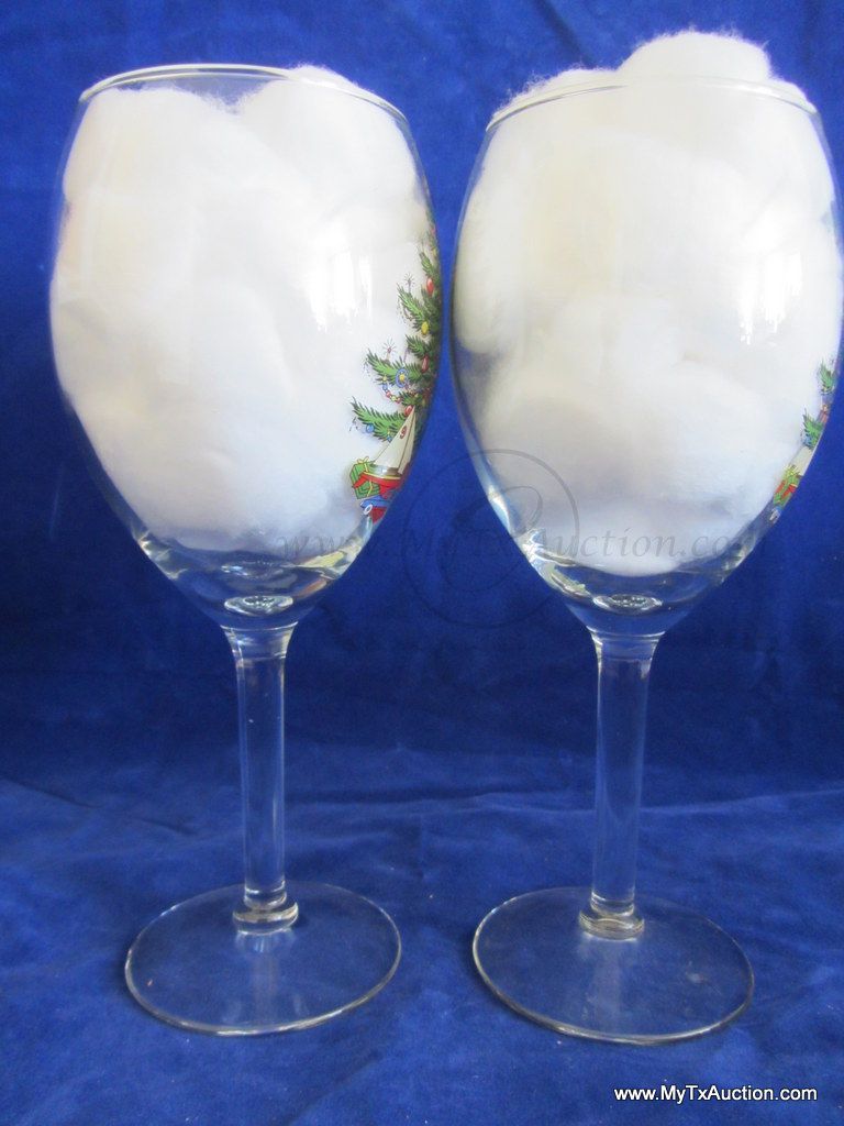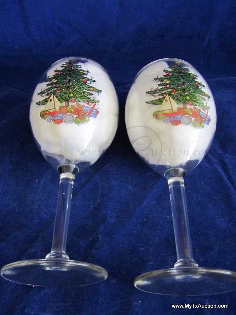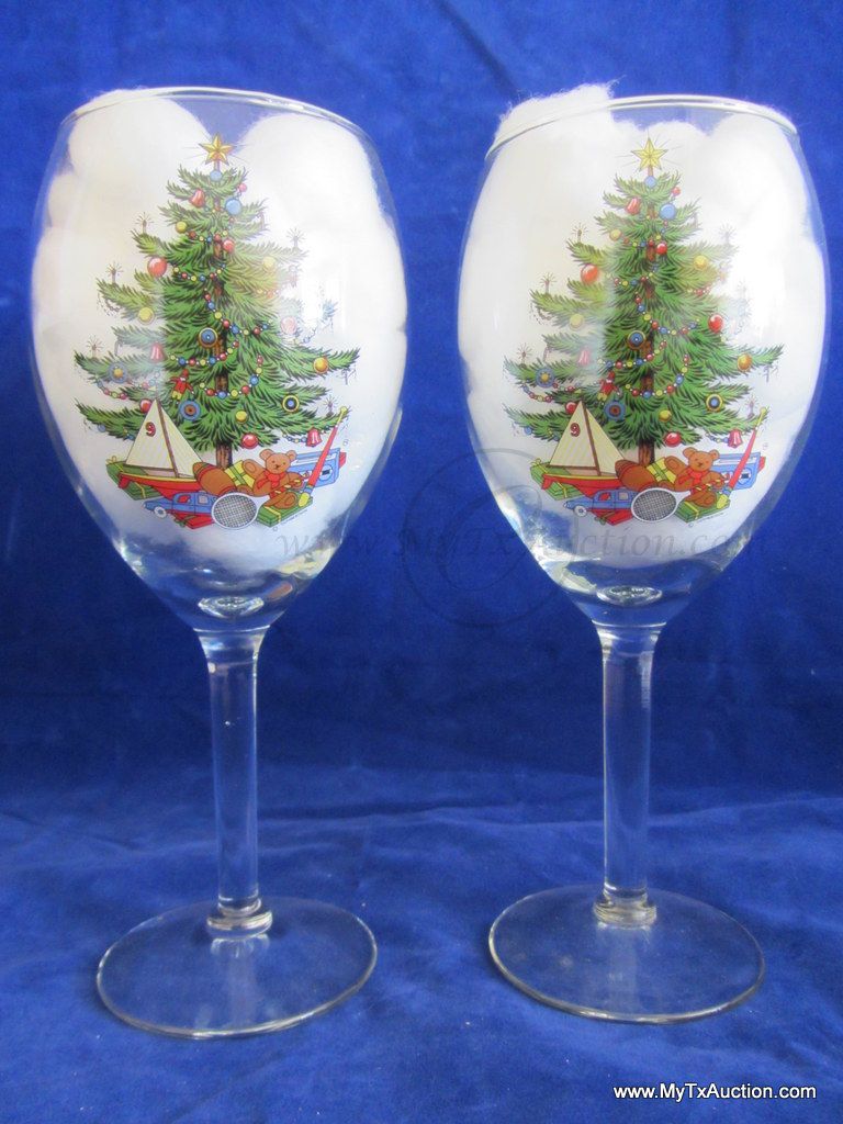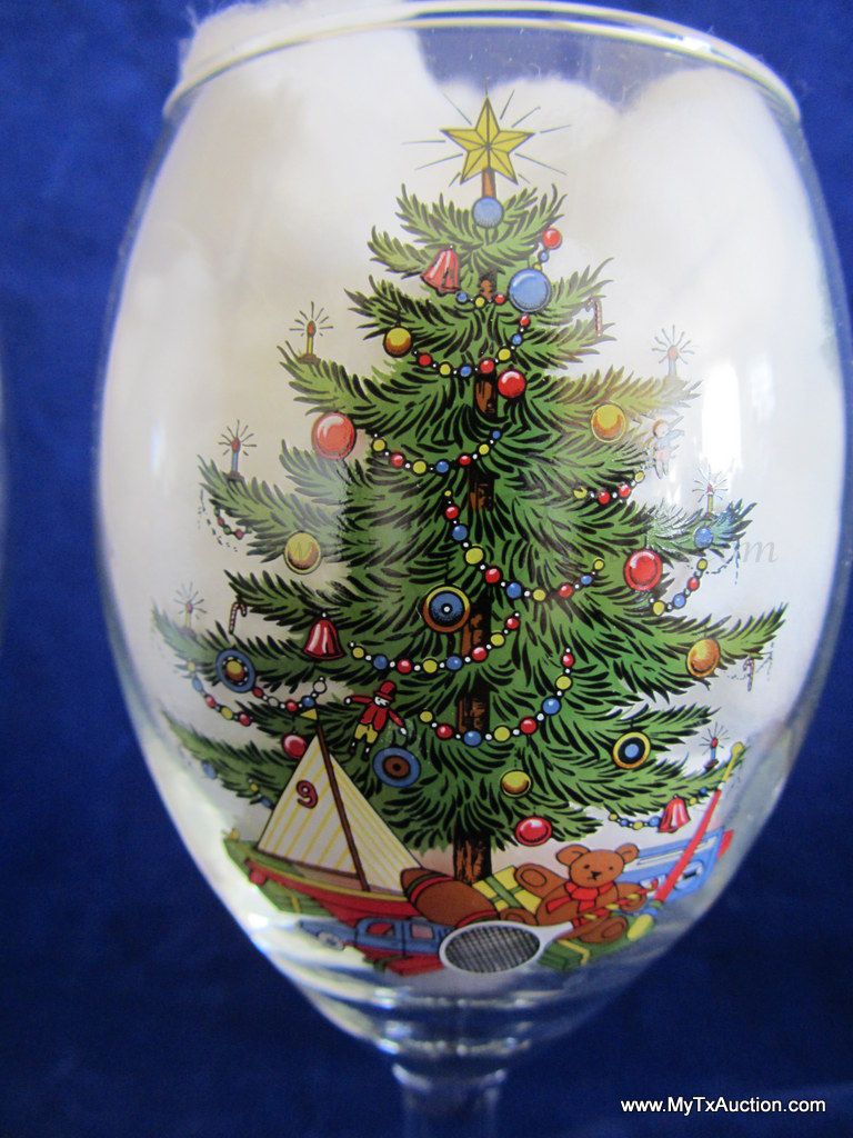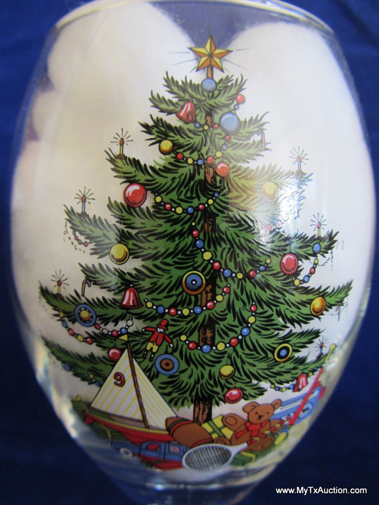 Large beautiful wine glass with the Cuthbertson sailboat Christmas tree design.