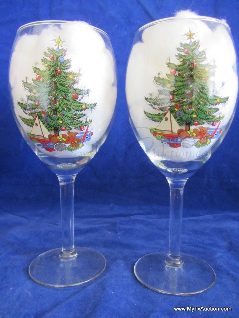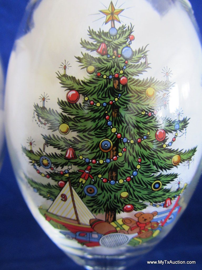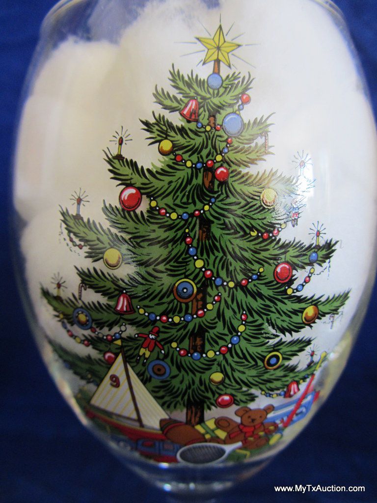 Large beautiful wine glass with the Cuthbertson sailboat Christmas tree design.