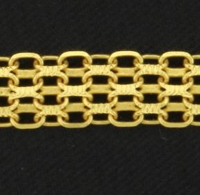 It is 14K yellow gold and is 5.8mm wide, with a magnetic clasp.         11.6g