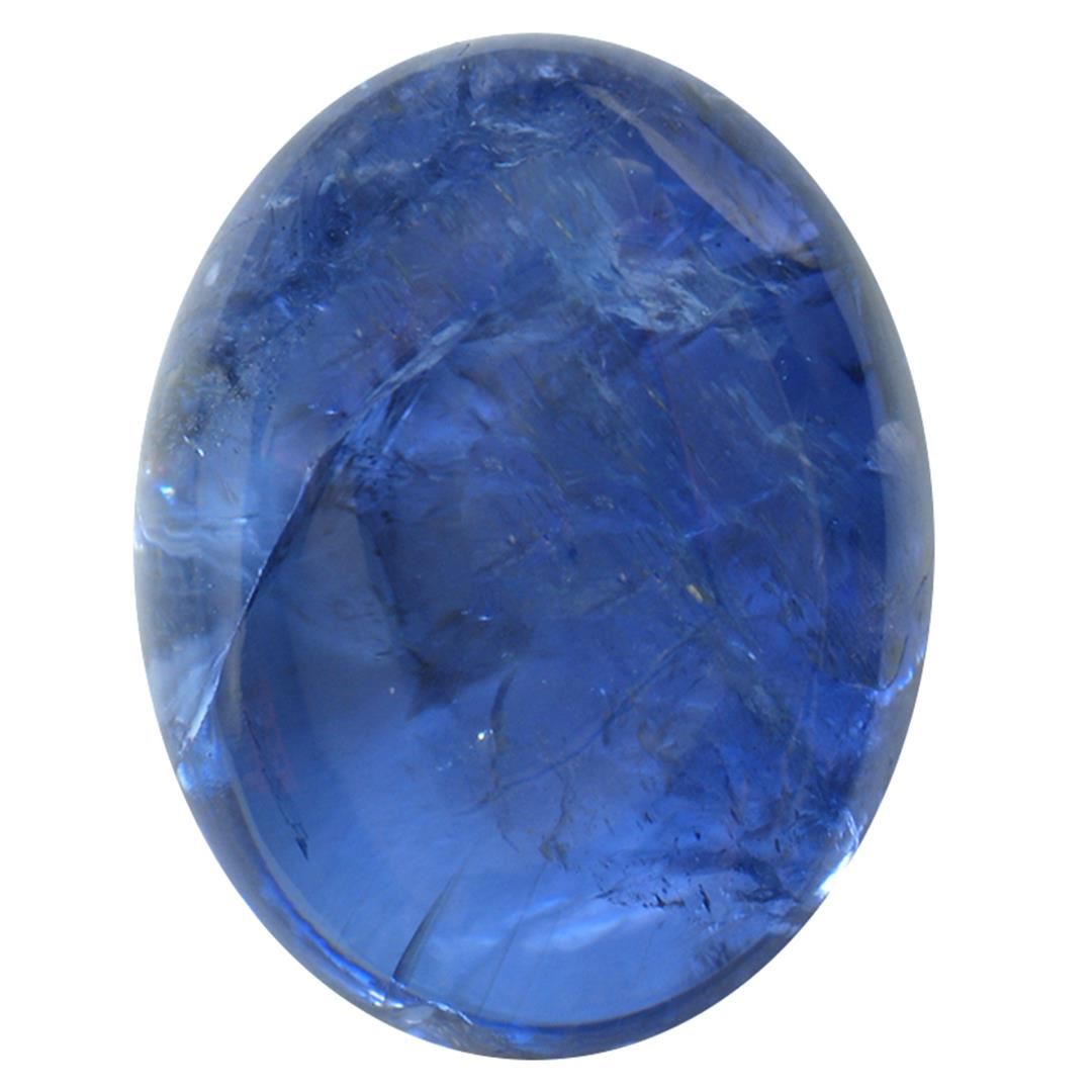 One oval cabochon cut natural tanzanite, measuring 17.50 x 13.00 x 8.00mm, exact weight 19.14ct., clarity is heavily included, type I, dark, very slightly grayish, blue color, (GIA B 7/3), cut is good. Transmitting light somewhat diffusely, transparent to translucent. Naturally occurring internal & external characteristics are present. Indications of heat treatment. Westfield Appraised at $1,840.00.