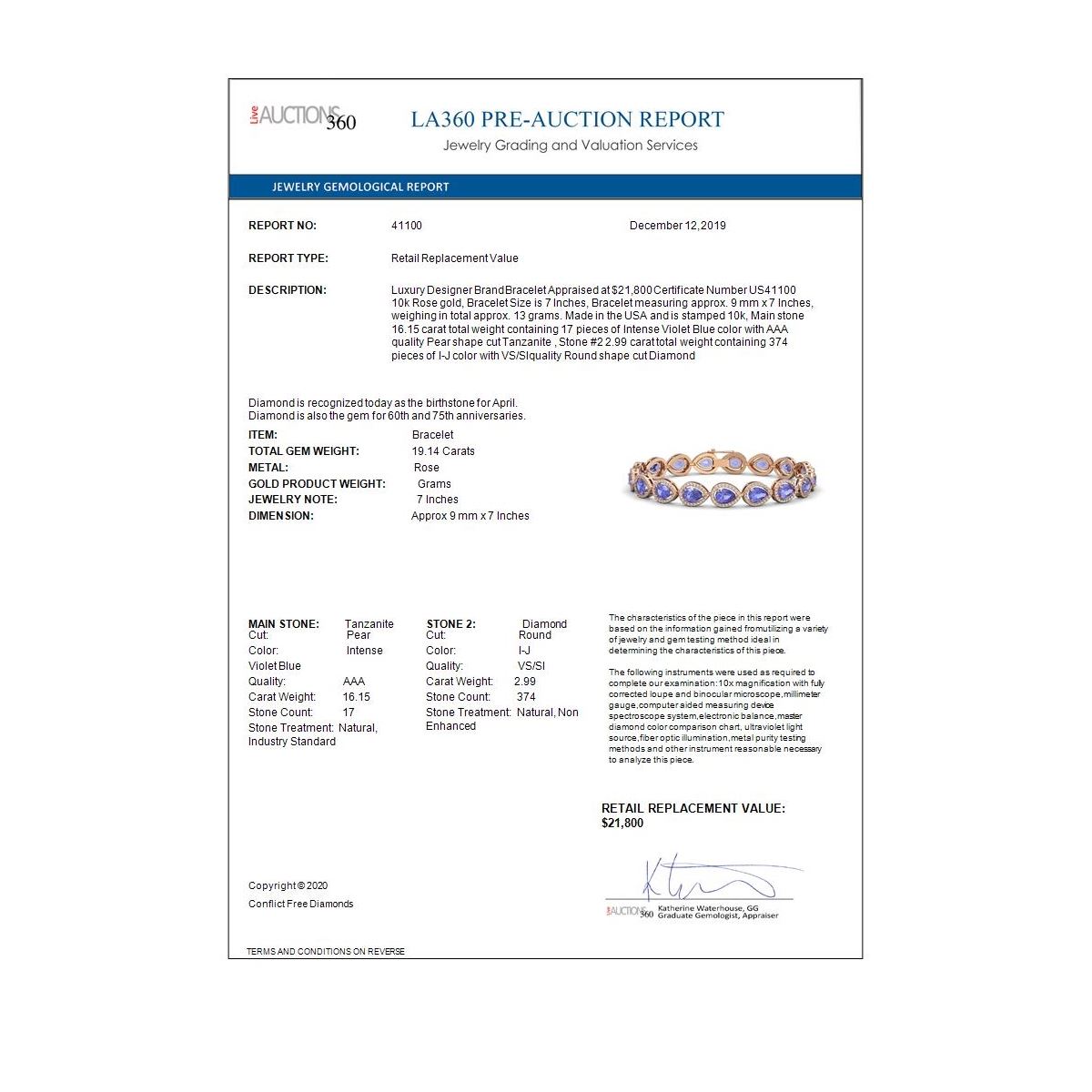 REF-396H5R - SKU: 41100 ---- 19.14 ctw Tanzanite & Diamond Micro Pave Halo Bracelet 10k Rose Gold