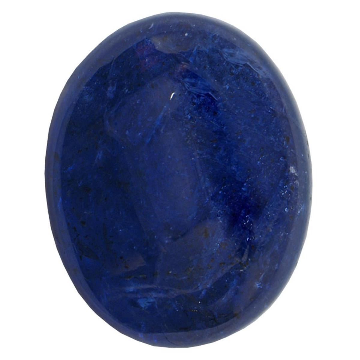 One oval cabochon cut natural tanzanite, measuring 18.00 x 14.00 x 9.00mm, exact weight 19.15ct., clarity is heavily included, type I, dark, very slightly grayish, blue color, (GIA B 7/3), cut is good. Transmitting light somewhat diffusely, transparent to translucent. Naturally occurring internal & external characteristics are present. Indications of heat treatment. Westfield Appraised.