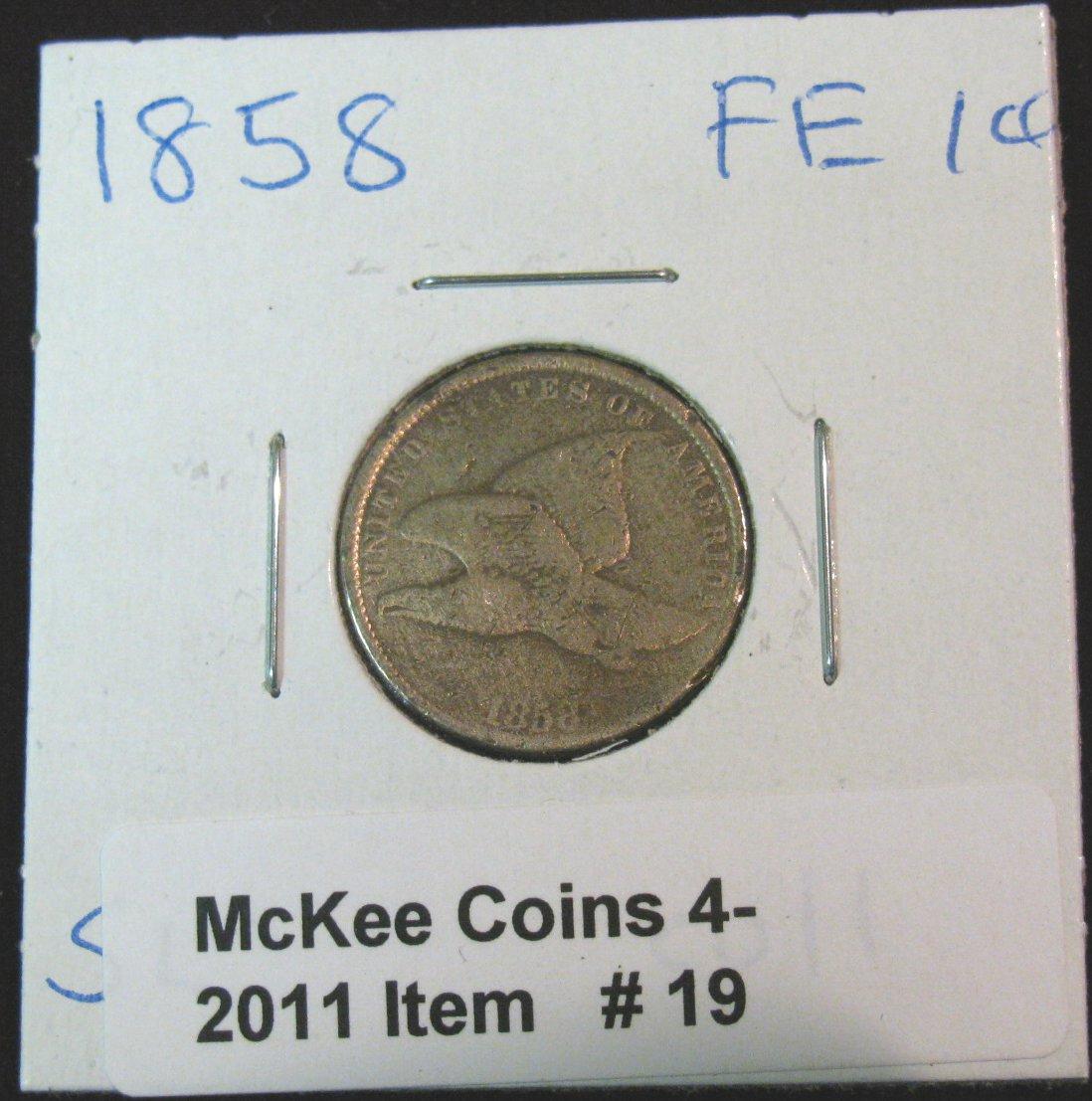 19. 1858 U.S. Flying Eagle Cent. Reverse badly scratched.