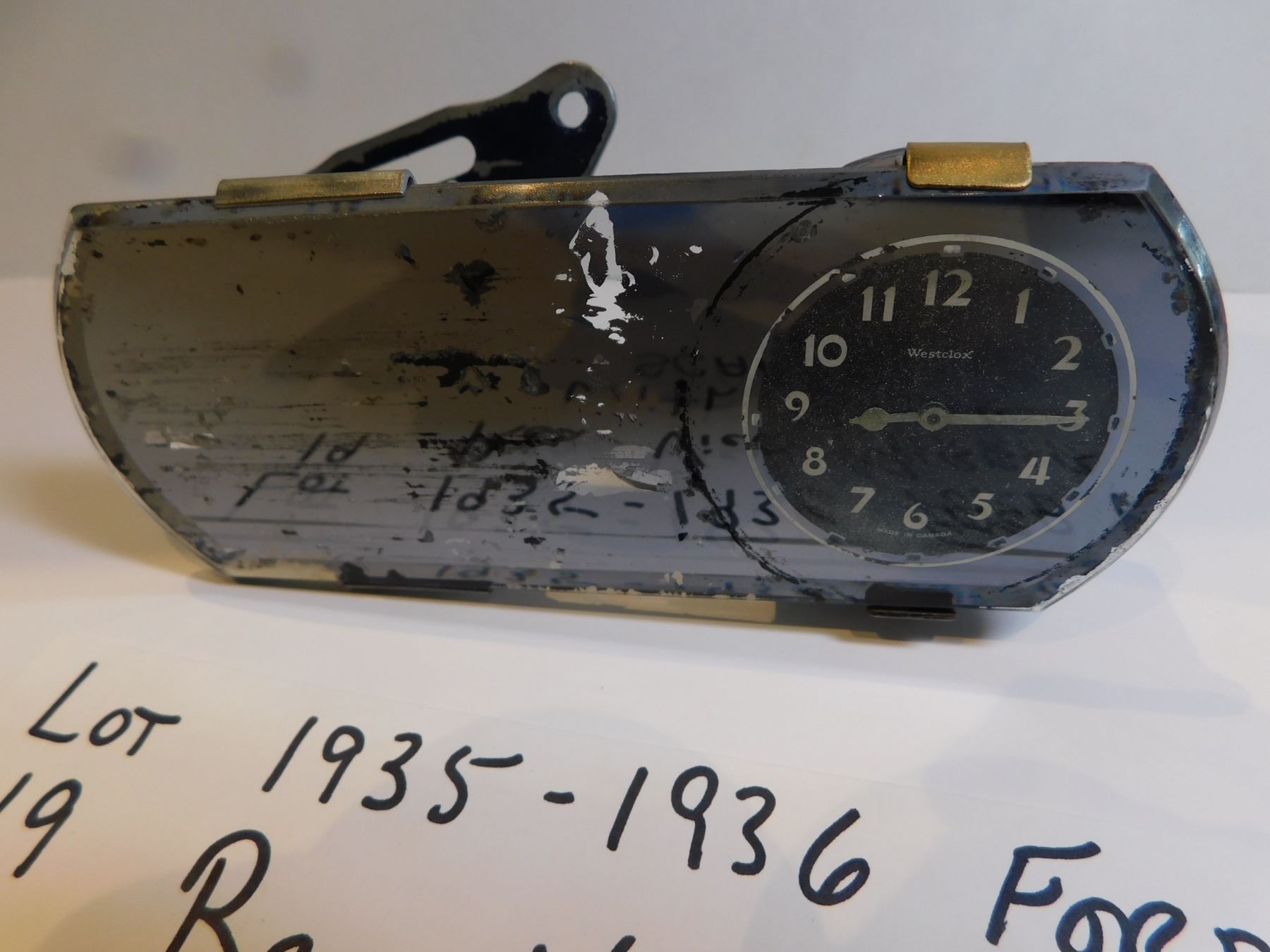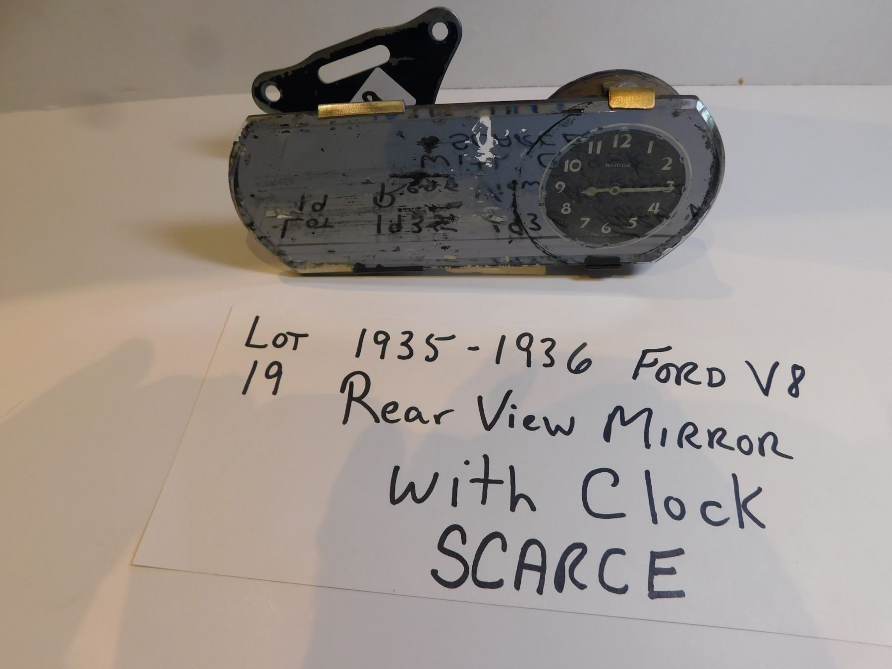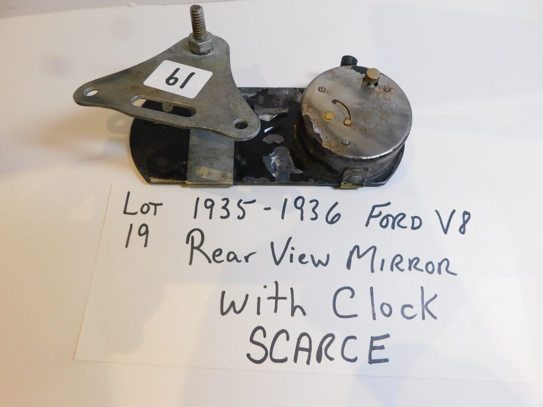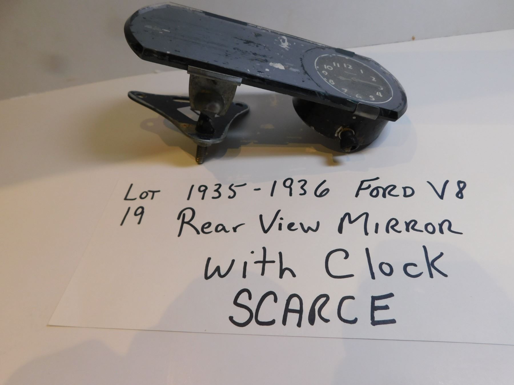 19. 1935-1936 FORD V8 REAR VIEW MIRROR WITH CLOCK, SCARCE