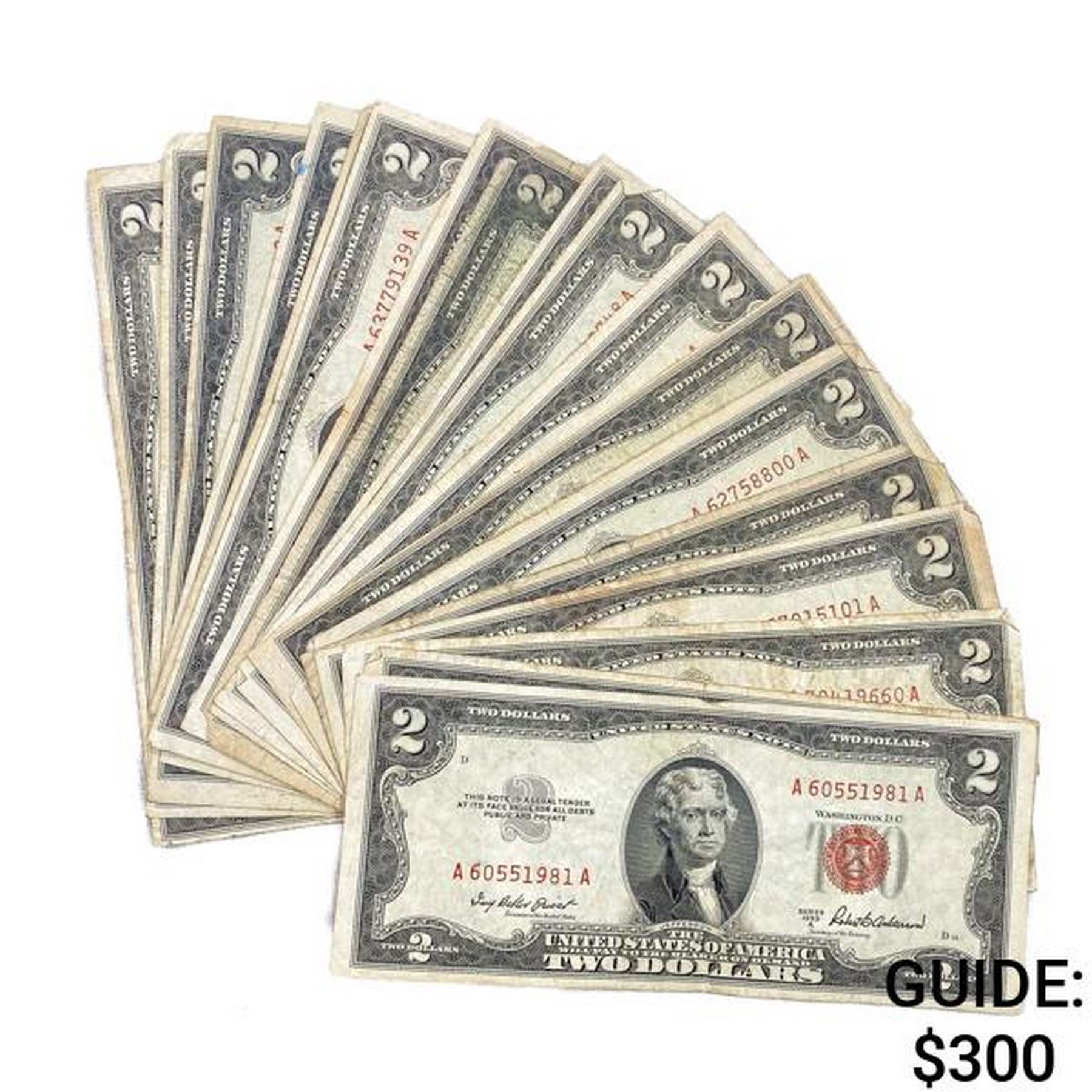 (19) 1953 $2 US Legal Tender Notes some w/ Stars