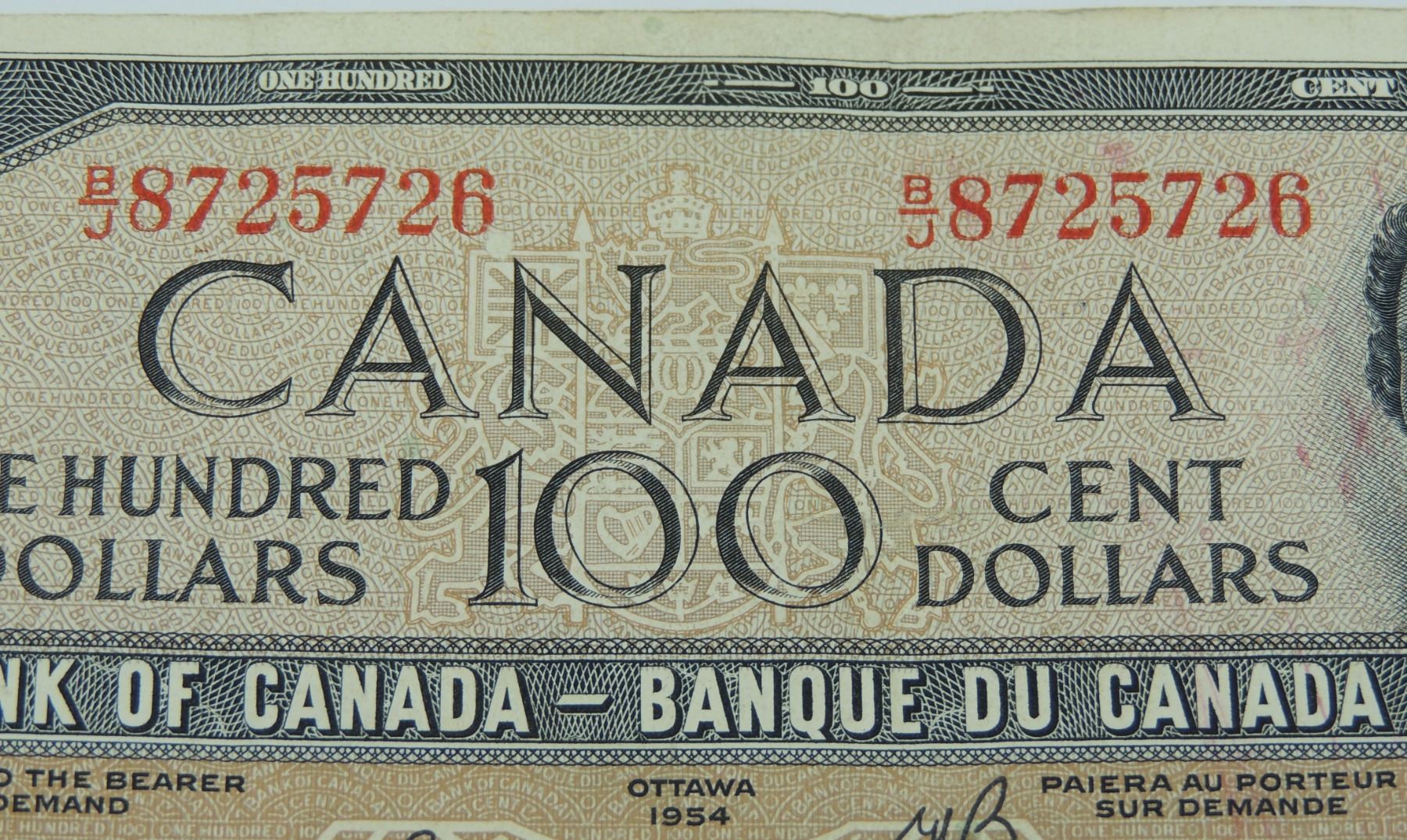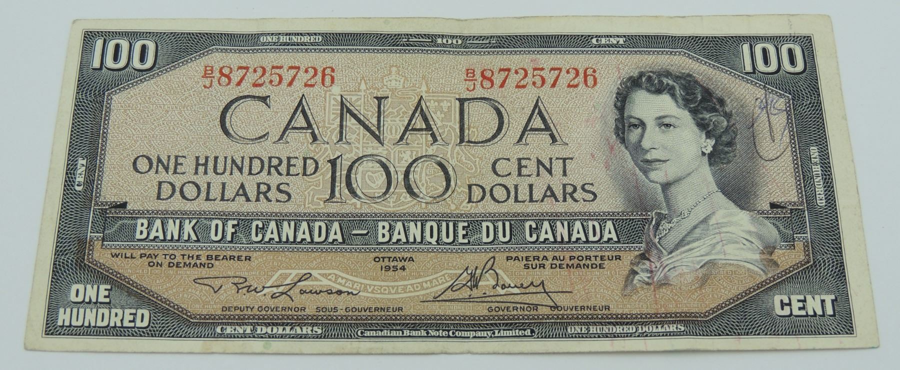 #19 1954 CANADA $100 DOLLAR BILL QE II
