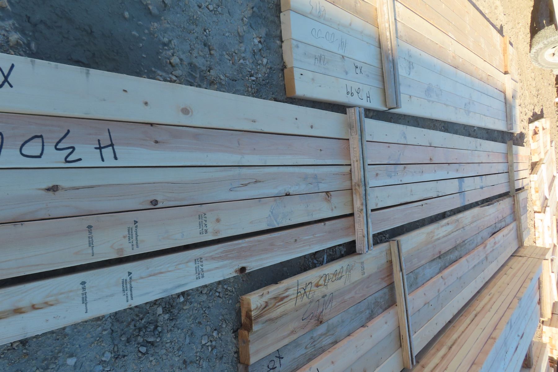 19 - 2 x 4 Boards. 14 of them are 18' and 5 are 20'.