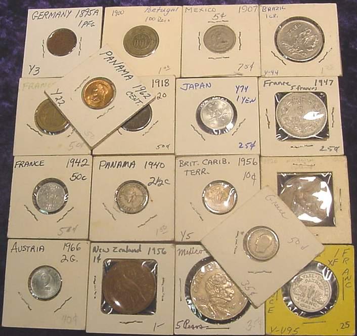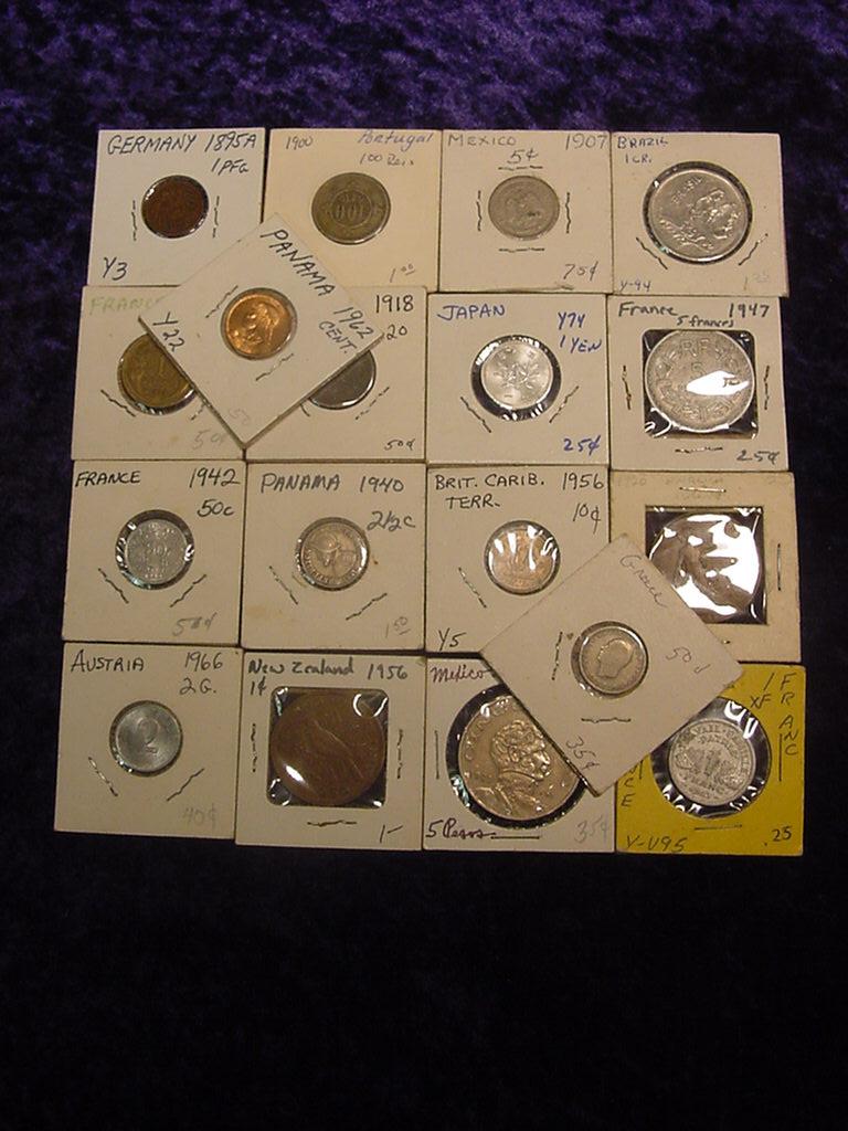 19. 20 Assorted foreign Coins In 2x2 holders. Dates From 1895-1971
