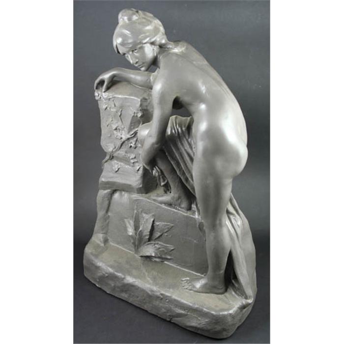 Late 19th/early 20th Century French terra cotta sculpture, signed Charles Perron, Paris foundry mark verso, 21"h. x 14"w. x 6"d. Good condition.