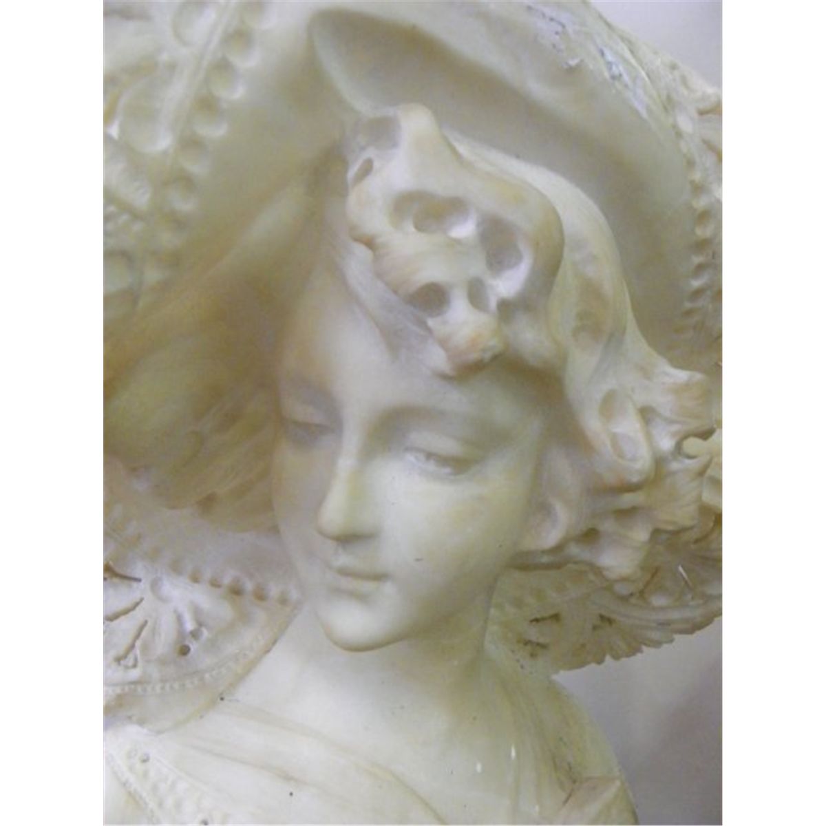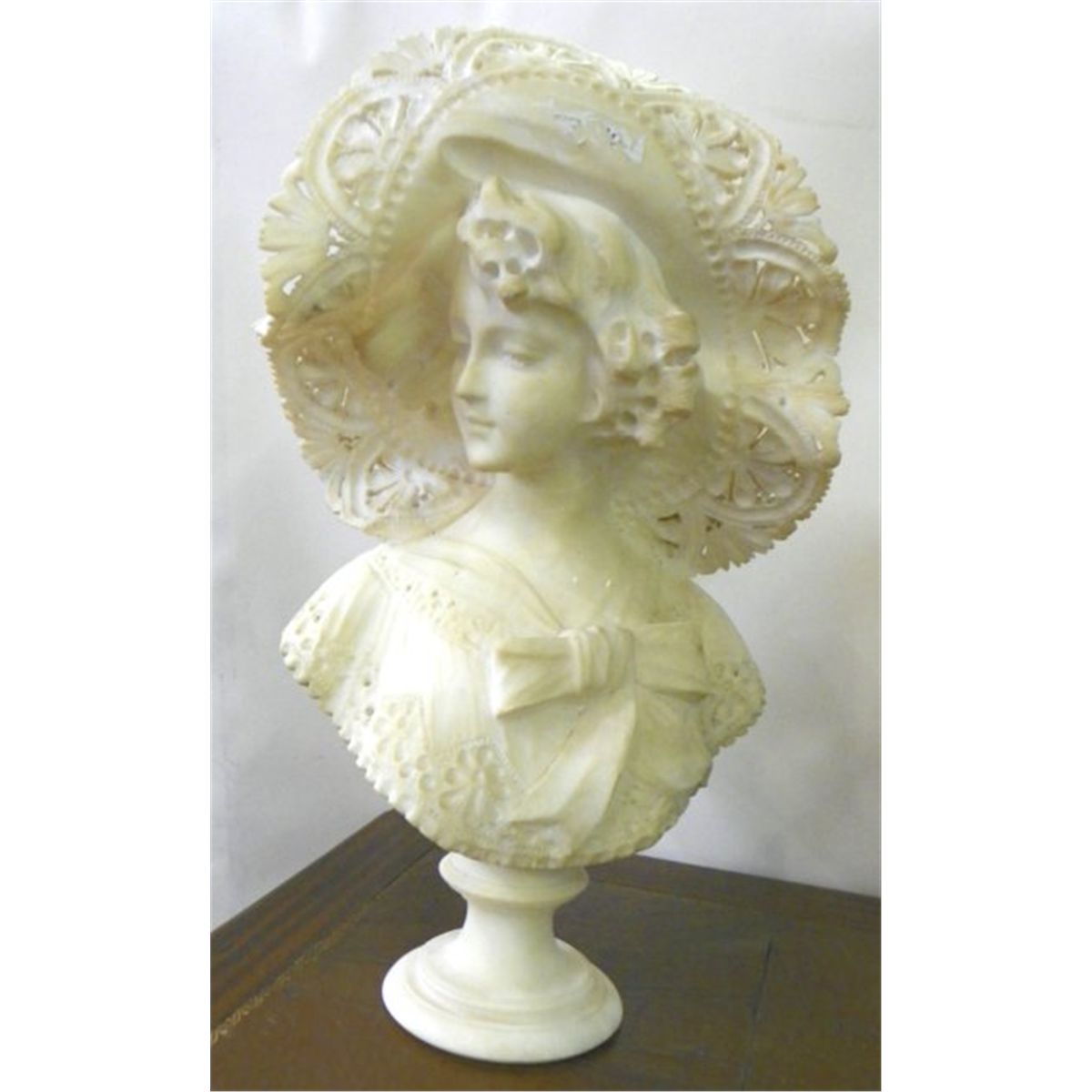 19/20thc Marble bust of a lady in a hat, 25" high x 13" wide, unsigned, minor chip on hat Please read our terms of sale.