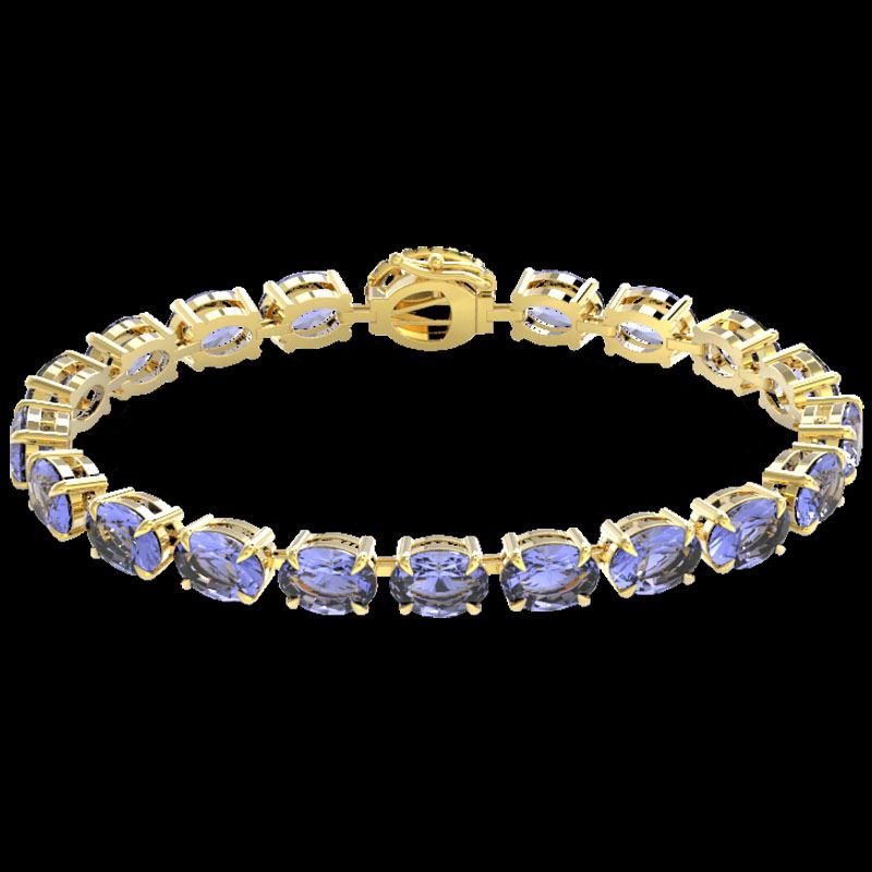 REF-180F2N -40248 ---- 19.25 CTW Tanzanite & VS/SI Diamond Eternity Micro Halo Bracelet 14K Yellow Gold ---- Luxury Designer Brand Bracelet Appraised at $13,850 Certificate Number US40248 14k Yellow gold, Bracelet Size is 7 Inches, Bracelet measuring approx. 8 mm x 7 INCHES, weighing in total approx. 12 grams. Made in the USA and is stamped 14k, Main stone 19 carat total weight containing 22 pieces of Intense Violet Blue color with AAA quality Oval shape cut Tanzanite , Stone #2 0.25 carat total weight containing 24 pieces of H-I color with VS/SI quality Round shape cut Diamond